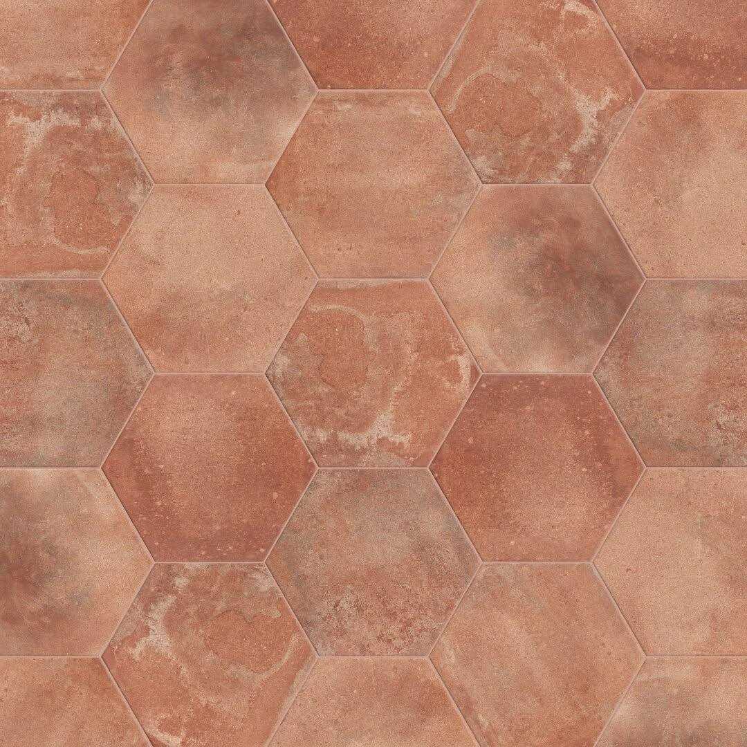 Bring a colonial feel to your present-day style home with this tile. With slight variation along the edges, this extruded porcelain tile offers a one-of-a-kind look that can only be achieved through a partially handmade process. Varying tones of ochre and sepia set the backdrop for this stone-look hexagon format tile, ensuring no two looks will ever be the same. This tile offers endless design possibilities and is a perfect choice on its own or coordinated with other products in the Americana series. Its impervious and frost-resistant features make this an ideal choice for indoor and outdoor installations including, kitchens, bathrooms, and patios. Tile is the better choice for your space. This tile is made from natural ingredients, making it a healthy choice as it is free from allergens, VOCs, formaldehyde, and PVC.