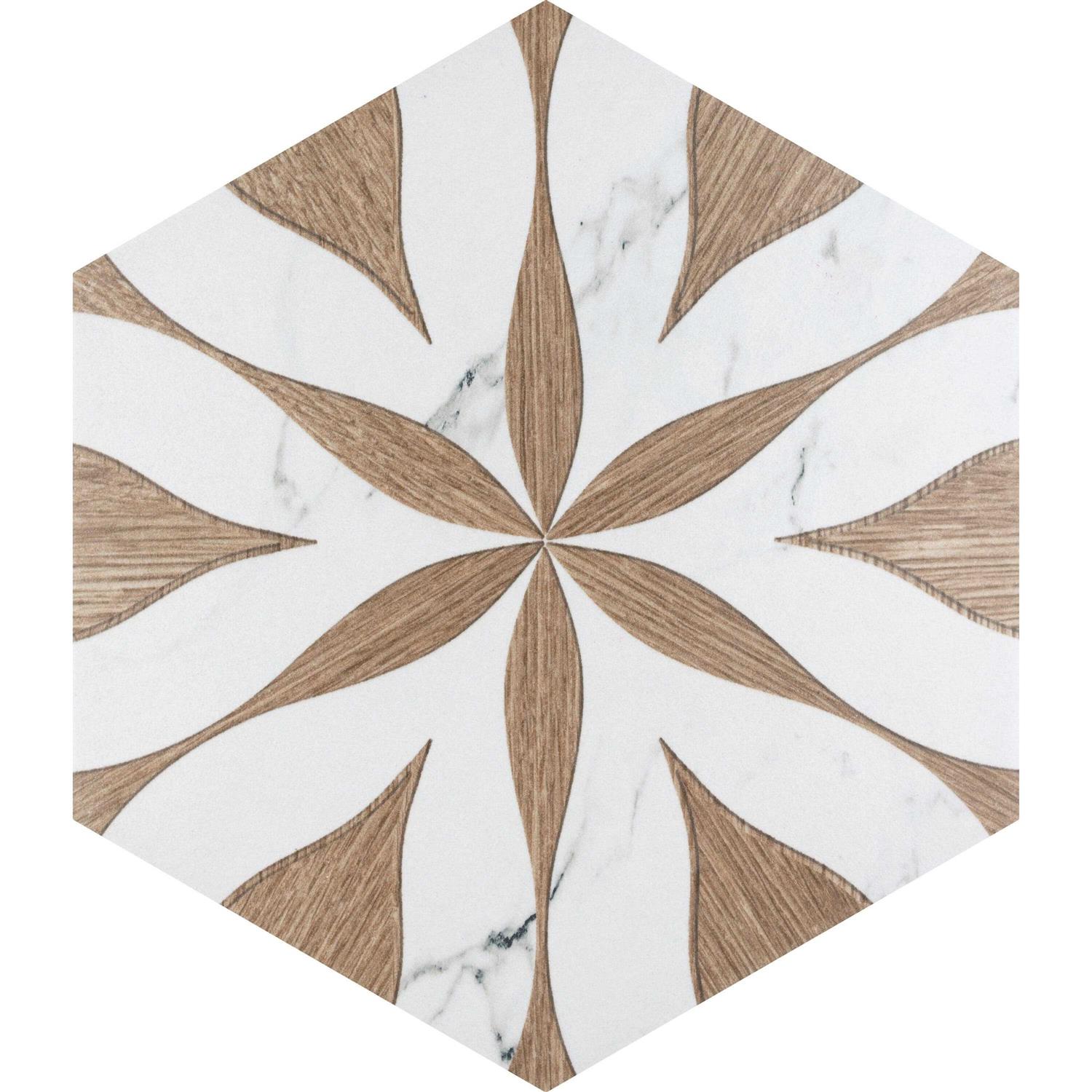 Merola Tile Inspired by a floral look, our Llama Flower Loire Porcelain Floor and Wall Tile provides decorative appeal that adapts to a variety of stylistic contexts, making it a great choice for your space. With its impervious, frost-resistant features, this hexagon tile is an ideal selection for both indoor and outdoor installations, including bathrooms, backsplashes, showers, hallways, entryways, patios and fireplace facades. This tile is a perfect choice on its own or paired with other products in the Llama Flower Loire Collection. Tile is the better choice for your space. This tile is made from natural ingredients, making it a healthy choice as it is free from allergens, VOCs, formaldehyde, and PVC. Colour/Finish: Noce