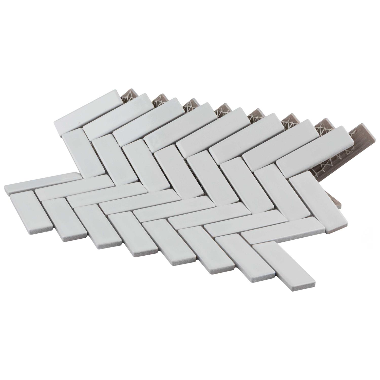 Merola Tile Metro Brick Herringbone Glossy White 10-5/8″ x 12-1/2″ Porcelain Mosaic Tile – Case 10 Tiles