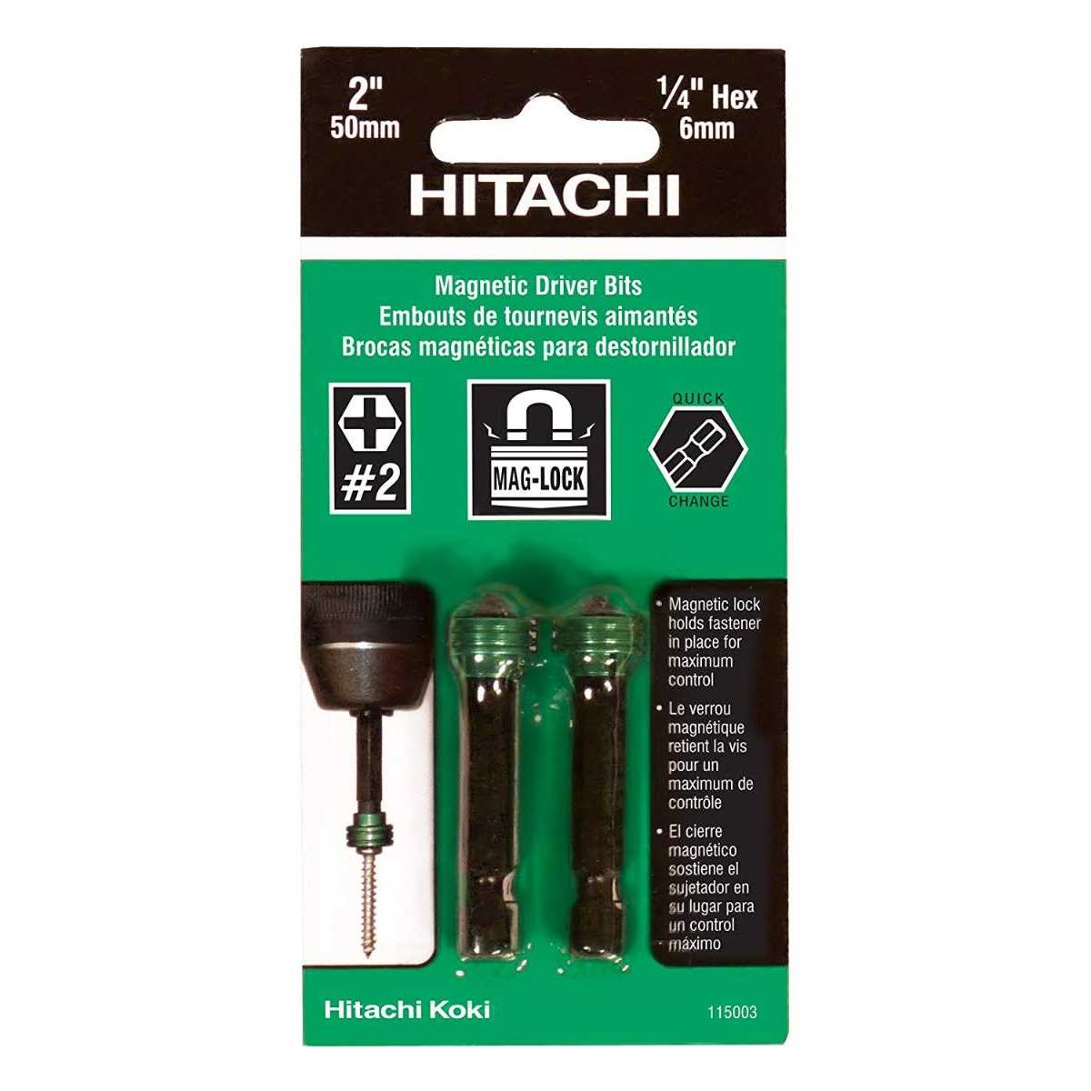 The 115003M Phillips #2 magnetic driver bit features a patented magnetic collar design, strong fastener holding power, black oxide finish for added corrosion resistance and a 1/4 in. Quick-change impact ready shaft. Patented magnetic collar design. Strong fastener holding power. Manufactured with high quality S2 steel. Black oxide finish for added corrosion resistance.