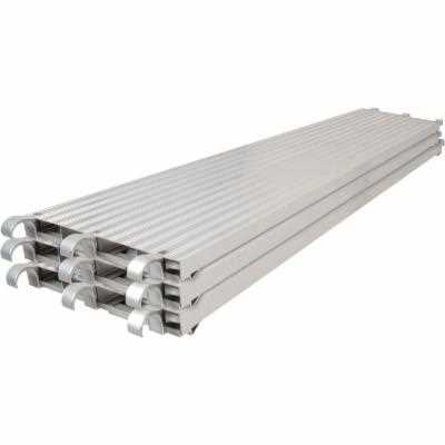 These Metaltech Scaffolding Platforms are built entirely out of aluminum and are stronger and sturdier than conventional wood scaffolding planks. Each board is 7 ft. long and 19 inches wide and can be used variously on Metaltech scaffolding or on any standard or arched frames. You get tougher scaffold planks because our aluminum work platforms flex less, are lighter, have more stability, and have a firmer stance than wood. They form robust walkboards for scaffolding and meet ANSI, CSA, and OSHA Standards. Our metal scaffolding resists corrosion, does not rot like wood, and supports 75 lbs of weight per square foot, making them the preferred scaffolding accessory for building and site work.Metaltech builds and designs practical, effective, efficient, and safe work equipment for office and home use. We strive to incorporate new technology and innovation into equipment and accessories that make sense, so you can get jobs done easily and on time.