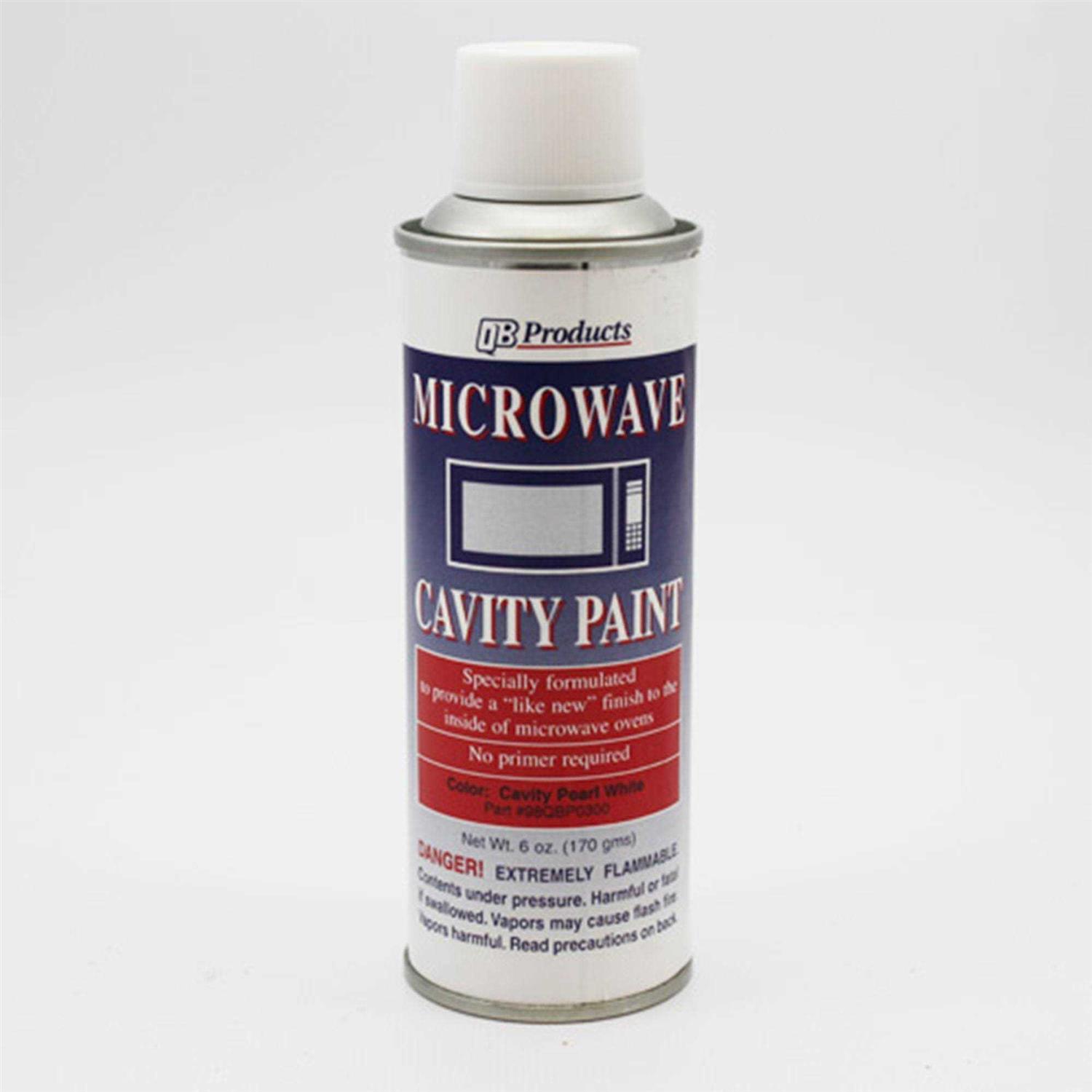 Microwave cavity paint which provides a “like new” finish on the inside of your microwave. No primer is needed with this 6-ounce spray paint. This microwave cavity paint is a pearl white color.