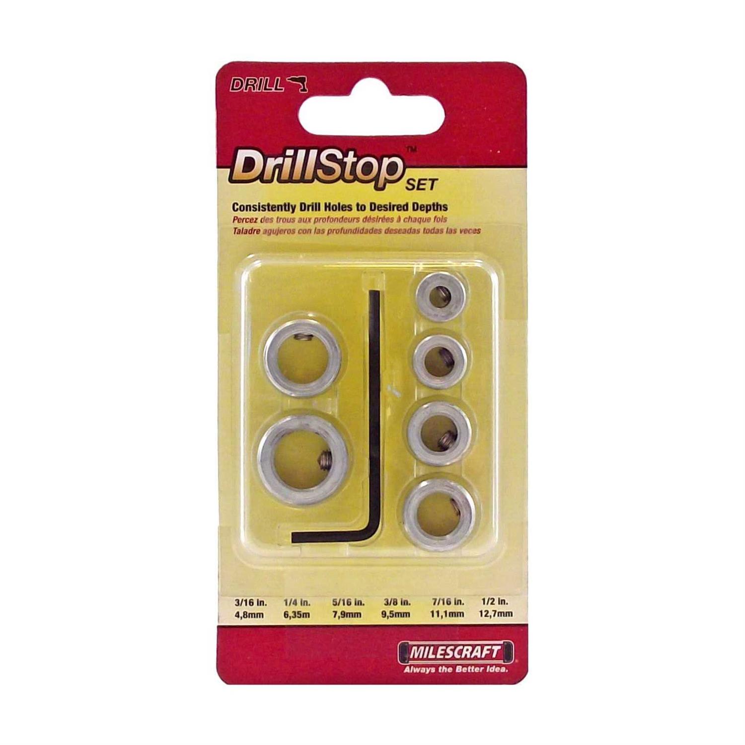 - The Milescraft 7 Piece Drill Stop Set consists of stop collars for controlling drill bit depth to a precise setting
