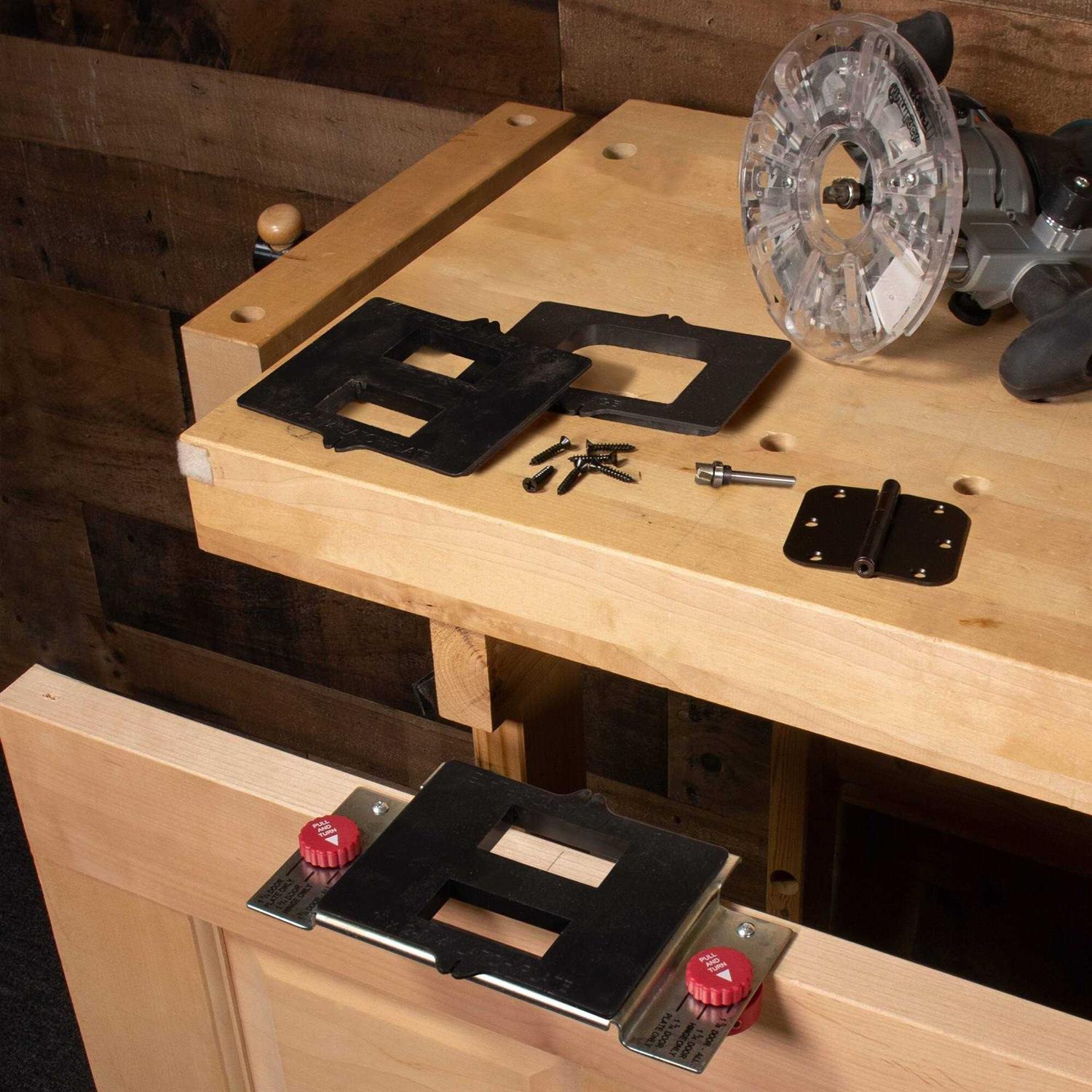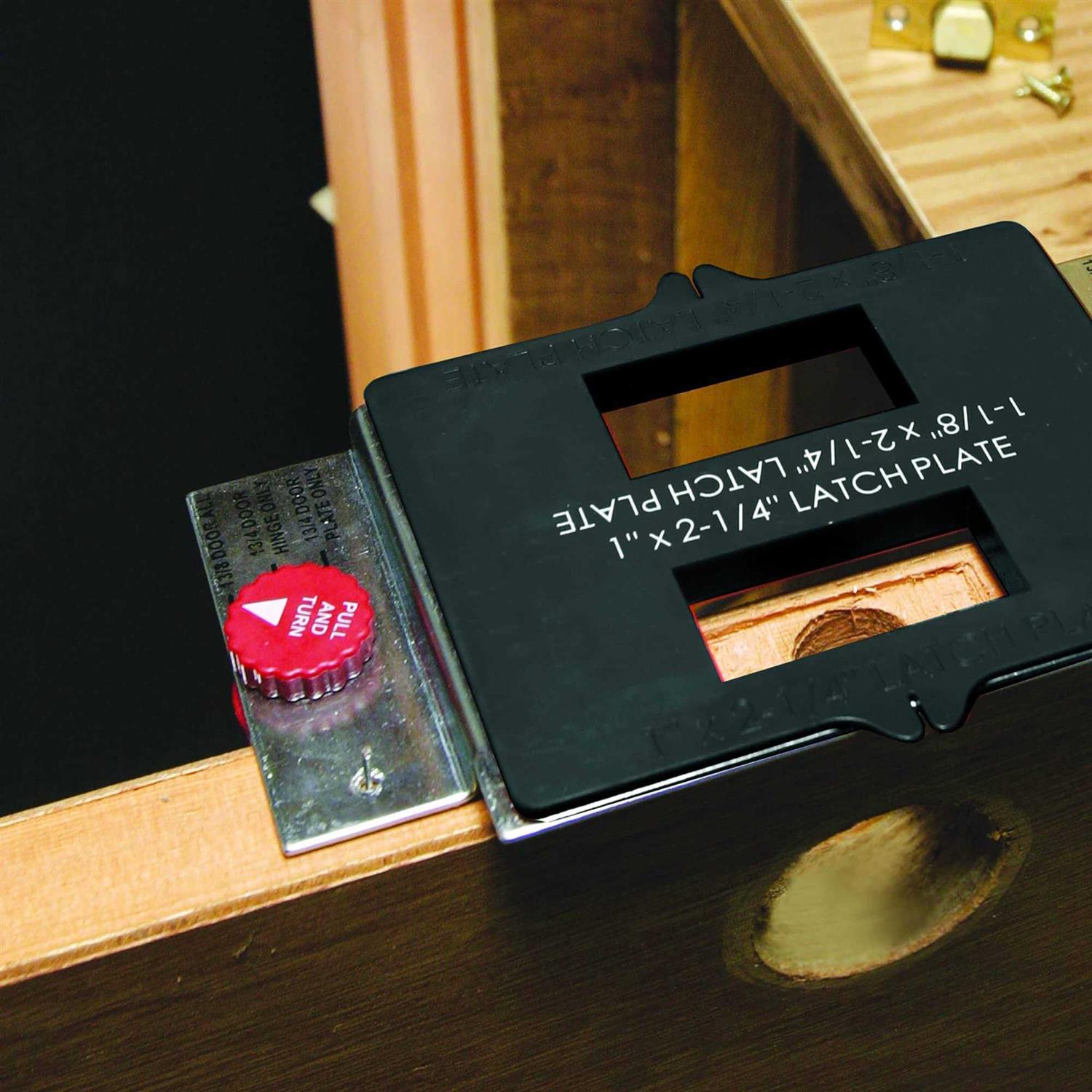 - Adjustable cams automatically align templates for 1-3/8in or 1-3/4in doors.