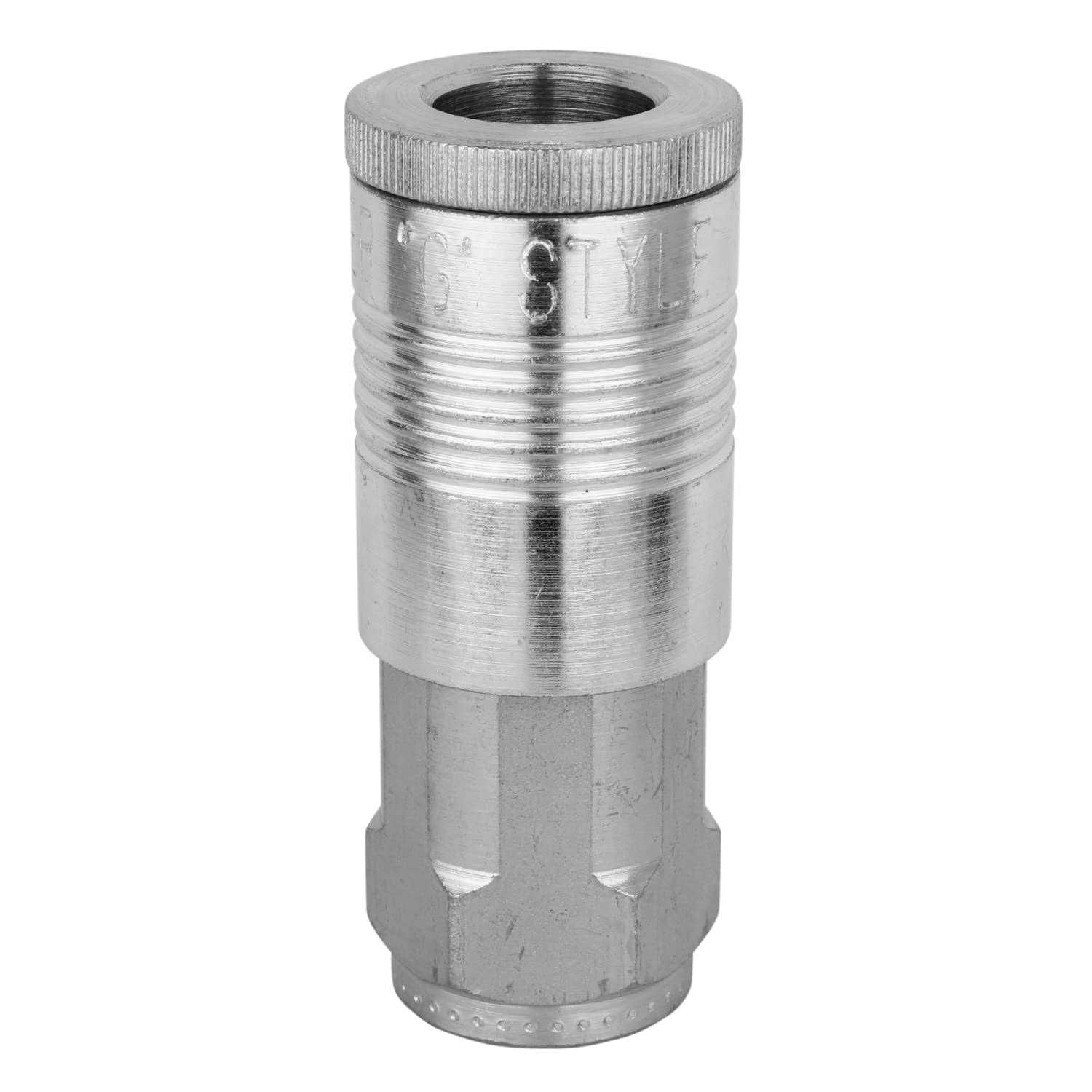G-style coupler bodies are steel, plated to resist rust. They feature maximum inlet pressure at 300 Psi. They also feature maximum temperature of 250 degrees F. These basic bodies work with either industrial interchange or tru-flate/parker style plugs.