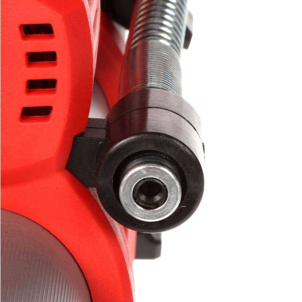 The Cordless Lithium-Ion Grease Gun, like most of Milwaukee’s tools, delivers the highest max operating pressure in its class to help you handle heavy-duty applications. This Milwaukee 2446-20 M12 Grease Gun is capable of delivering 8,000 PSI’s of operating pressure. This high quantity of power is ideal for heavy-duty machinery, freezing temperatures and clogged grease fitting applications. The Milwaukee 2446-20 M12 Grease Gun is powered by a M12 REDLITHIUMTM Battery (sold separately), and has the capacity to dispense six grease cartridges per charge. Last but not least this Grease Gun is lightweight and comfortable to use. The ergonomic handle offers greater comfort during prolonged use. The gun comes with a 36” flex hose with spring guard and grease coupler.