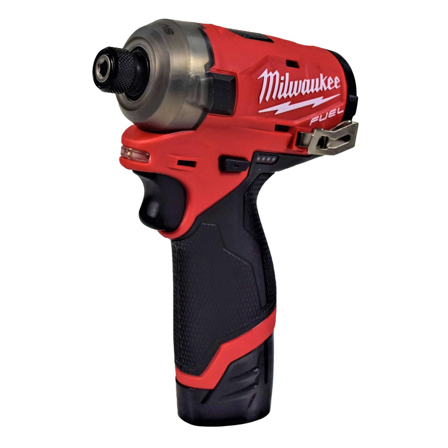 The Milwaukee M12 Fuel Surge 1/4″ Hex Hydraulic Driver Bare Tool (2551-20) is the industry’s first 12-volt hydraulic driver. Featuring FLUID-DRIVE Hydraulic Powertrain, the hydraulic driver will let you experience operation up to 2X quieter with less vibration for smoother and faster driving speeds compared to standard impacts. The compact size of the tool and battery give you unmatched access in tight spaces and allows for easy transport on a tool belt and easy fitting into your job site tool bag. The POWERSTATE Brushless Motor delivers up to 0-3,200 RPM with constant power output to drive screws faster. Built-in REDLINK PLUS Intelligence is the most advanced electronic system on the market, preventing damage to your tool and battery caused by overloading or overheating. The cordless hydraulic driver is compatible with all Milwaukee M12 REDLITHIUM Compact Batteries or Extended Capacity Batteries, providing you with more work per charge and more work over the life of the pack than competitive batteries. The impact driver’s 4-Mode DRIVE CONTROL gives you greater control over output speed and power for greater versatility in a wide range of applications. Self-Tapping Screw Mode reduces walking when you are self-tapping screws as well as reduces overdriving, breaking and stripping out screws.