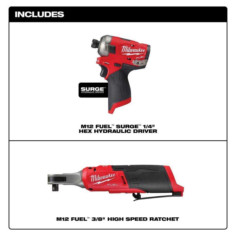 Milwaukee 2551-22-2567-20 M12 Fuel 12V Lithium-Ion Cordless Surge 1/4 in. Hex Impact Driver and M12 Fuel High Speed 3/8 in. Ratchet Combo Kit
