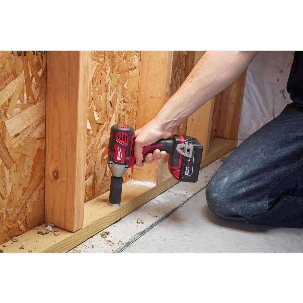 The Milwaukee 2659-22 M18 cordless 1/2″ compact impact wrench is the most powerful 1/2″ compact impact wrench in its class and offers the best power to size ratio among like competitors. Featuring a Milwaukee built 4-Pole frameless motor and optimized impact mechanism, this impact driver delivers up to 2,450 RPM, 3,350 IPM and 183 ft-lbs of fastening torque for class-leading performance. Redlink intelligence provides optimized performance and overload protection using total system communication between tool, battery and charger. The M18 cordless 1/2″ compact impact wrench features a 1/2″ pin-detent anvil for maximum socket retention, an LED Light to illuminate work surfaces, and includes an all-metal, reversible belt clip for temporary tool storage. The Redlithium battery pack delivers more work per charge and more work over pack life than the competitors. The kit includes two M18 XC Redlithium batteries, an M18 and M12 multi-voltage charger, and a carrying case.