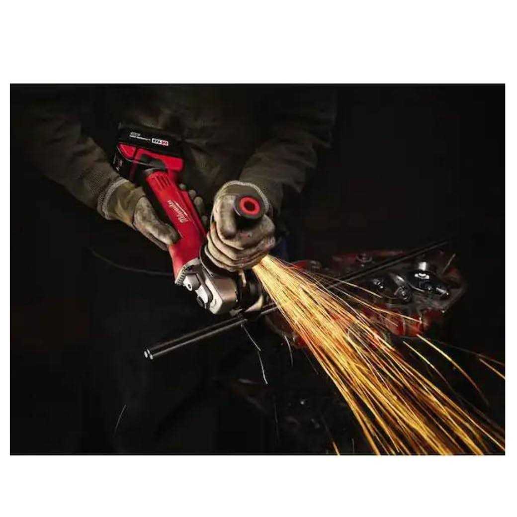 Milwaukee 18V 4-1/2″ Cut-off/Grinder provides speed, durability, and ease-of-use to handle industrial applications. The cut-off grinder has a 4-pole motor, delivering maximum power when cutting or grinding. The tool is the only cordless cut-off/grinder in the market to feature the user-preferred paddle switch, providing comfort and ease-of-use when operating in various positions. L-shape intake vents protect the grinder by keeping debris from entering the tool and damaging internal components.