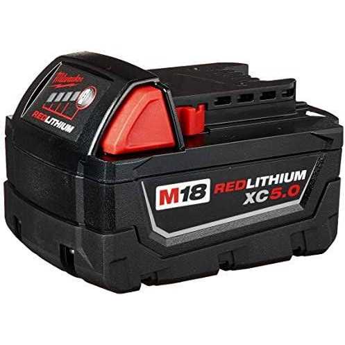 Battery Packs by Milwaukee. Details:The M18 REDLITHIUM 18-Volt Lithium-Ion XC 5.0 Ah Extended Capacity Battery from Milwaukee delivers exceptional run time, power and longevity. It features superb pack construction, electronics and performance to furnish more work per charge and more work over the life of the pack. An advanced design protects the pack against harsh job site environments, routing water away from the electronics and out of the battery pack. The ingenious design also minimizes heat to extend run time and inhibits pack failures from vibration or drops. Furthermore, it’s able to operate in extreme cold weather conditions (below 0F/-18C) to keep winter weather projects on pace. Managed by Milwaukee’s exclusive REDLINK Intelligence, the battery features overload protection to prevent cordless power tools from being damaged in heavy-duty applications, while the discharge protection prevents cell damage. It also provides full system compatibility with over 100 M18 cordless…