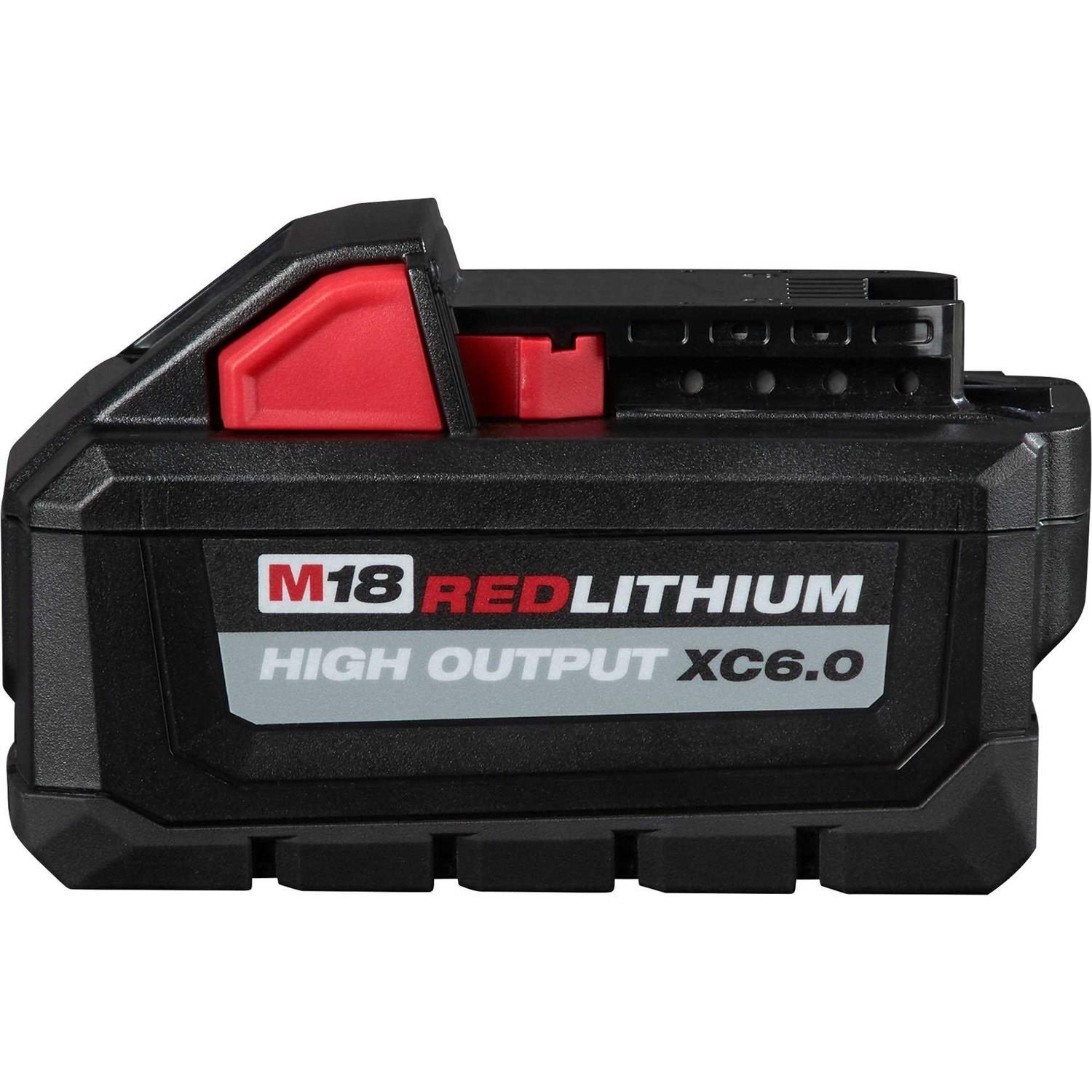The M18 RedLithium High Output XC6.0 battery pack provides 50% more power and runs 50% cooler vs M18 RedLithium XC battery packs. The optimized combination of size and increased power provides a great solution for the entire range of M18 products. It delivers fade free power and runs substantially cooler through heavy applications, allowing tradesmen to push their cordless tools harder and longer than ever before. The M18 RedLithium High Output XC6.0 provides increased power in extreme cold weather conditions (below 0F / -18C) and delivers more work per charge, driving corded replacement on the jobsite. The RedLithium High Output XC6.0 battery is fully compatible with 150+ M18 solutions.