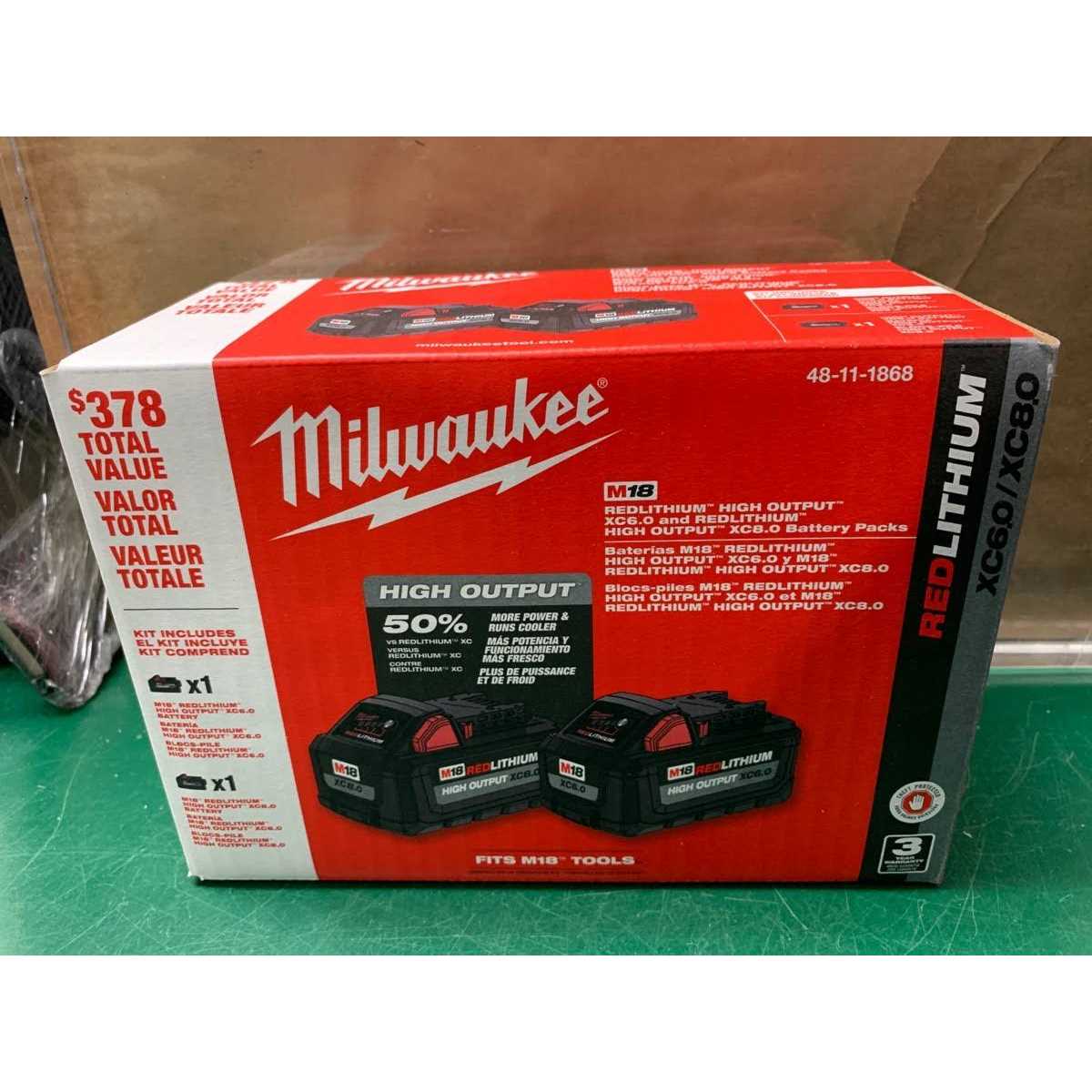 The MILWAUKEE M18 REDLITHIUM HIGH OUTPUT XC8.0 Battery Pack and the M18 REDLITHIUM HIGH OUTPUT XC6.0 Battery Pack provides 50% more power and runs 50% cooler vs M18 REDLITHIUM XC battery packs. The optimized combination of size and increased power provides a great solution for the entire range of M18 products. It delivers fade free power and runs substantially cooler through heavy applications, allowing tradesmen to push their cordless tools harder and longer than ever before. The M18 REDLITHIUM HIGH OUTPUT XC6.0 and M18 REDLITHIUM HIGH OUTPUT XC8.0 provide increased power in extreme cold weather conditions (below 0F /-18C) and deliver more work per charge, driving corded replacement on the jobsite. The REDLITHIUM HIGH OUTPUT XC6.0 battery and M18 REDLITHIUM HIGH OUTPUT XC8.0 are fully compatible with 250+ M18 solutions.