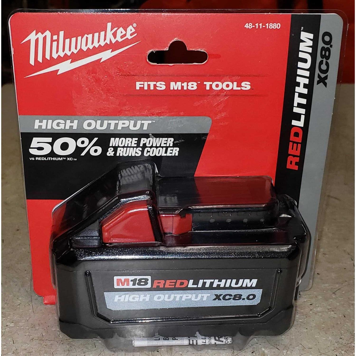 Our M18 Redlithium High Output XC8.0 battery pack provides you with 50% more power and runs 50% cooler vs. our other M18 Redlithium XC battery packs. The optimized combination of smaller size and increased power of the 18 Volt battery provides you with a great solution for the entire range of M18 products. The lithium-ion battery delivers fade-free power and runs substantially cooler through heavy applications, allowing you to push your cordless power tools throughout a wide application range. The M18 XC8.0 battery provides you with increased power in extreme-cold weather conditions (below 0 deg F/-18 deg C) and delivers more work per charge, driving corded replacement. The Redlithium High Output XC8.0 extended capacity battery is fully compatible with all 175+ Milwaukee M18 solutions.