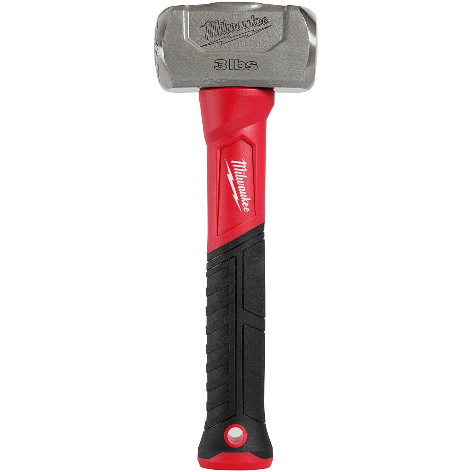 Get a bargain on the Milwaukee 48-22-9310 3lb Fiberglass Drilling Hammer and update your tool collection with a popular solution. This is a specialty hammer that is great for hammering chisels, punches, stakes, and spikes. Milwaukee Tool Company is known for tool reliability and innovative solutions.As the manufacturer describes it, Our 3lb Drilling Hammer features one milled and one smooth-faced for unmatched versatility on jobsites. The milled face grips chisels, punches, stakes, and spikes to reduce slippage or misstrikes, while the smooth face can be utilized for a wide range of striking applications. The drilling hammer is designed with a high strength fiberglass handle and reinforced overstrike protection to offer ultimate power and durability. Our dual-faced drilling hammer is also precision balanced for ease of use and provides forceful blows with less effort.