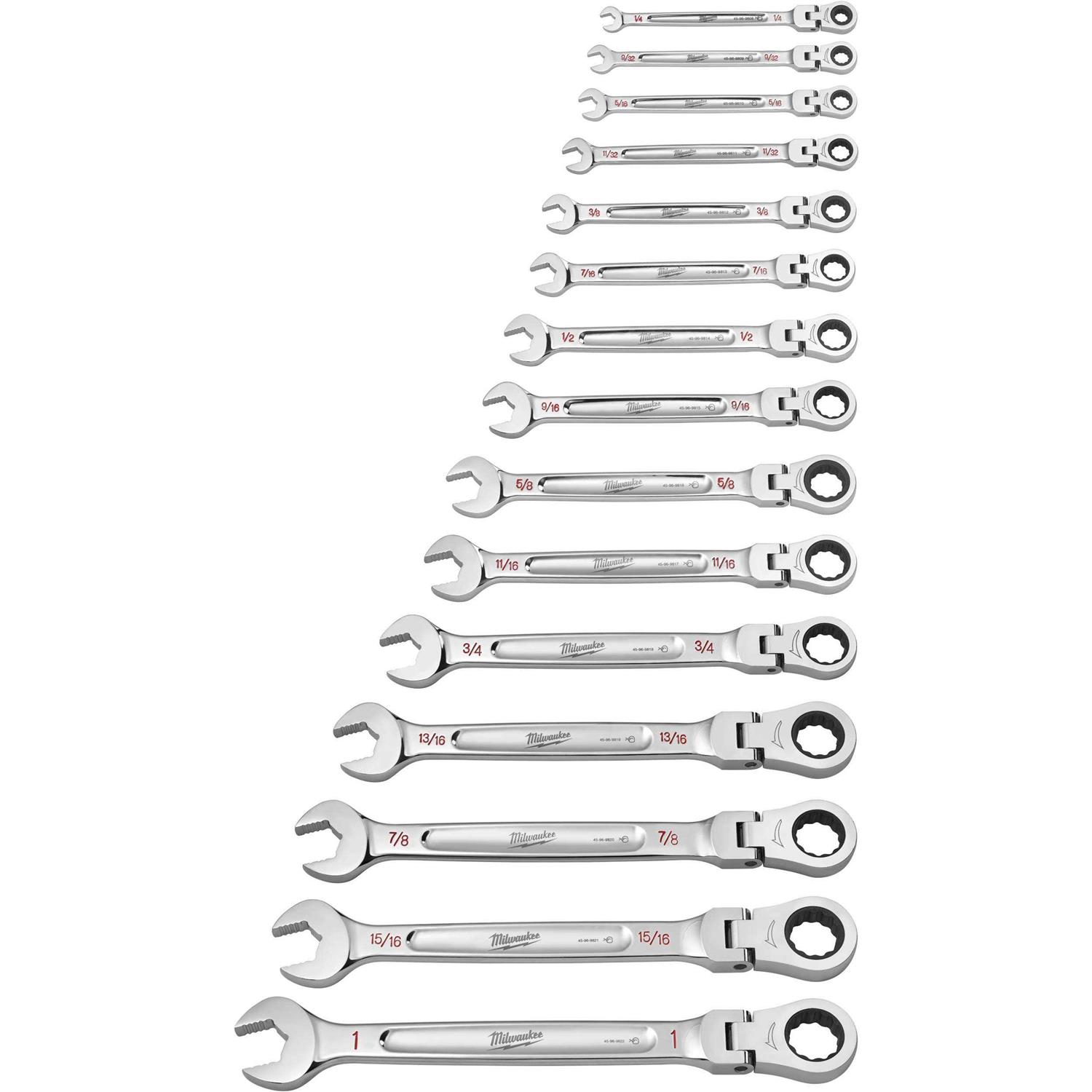 Milwaukee 48-22-9413 15pc Flex Head Ratcheting Combination Wrench Set – SAE