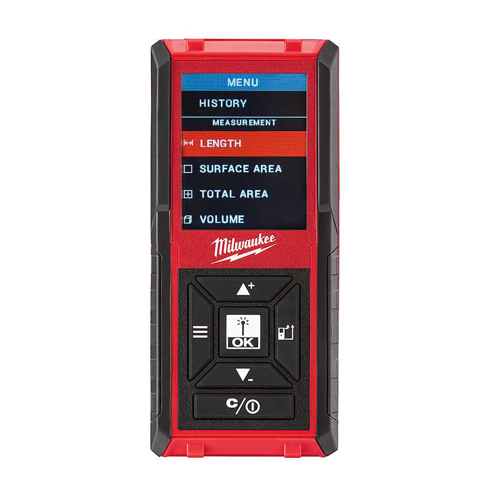 Milwaukee 330′ Laser Distance Meters are designed to provide the easiest measurements from all orientations, and feature an array of new functionality such as intuitive user interfaces, 3-position auto-detecting levers, and an industry-first digital auto-level. 2” color screens offer maximum visibility in low light conditions. Each features a simplified user interface that has been designed from the ground up for fast navigation so users can quickly choose their function and take a measurement with minimal downtime. Exclusive to the Milwaukee 330′ Laser Distance Meter is the digital auto-level feature. This new functionality allows for a measurement to be automatically taken when the meter reaches a level position, increasing accuracy when measuring long distances. For additional ease of use, the 330′ solution provides a 3-position auto-detecting lever that allows for measurements from corners and edges. Each 330′ Laser Distance Meters offer several different measurement functions that allow users to add and subtract values and calculate linear distance, indirect height and length, surface area, total area, and volume. In addition, each tool includes memory storage for 30 readings and impact-resistant overmold for protection from tough jobsite conditions. Milwaukee Laser Distance Meters also feature a side shot button for an easier, more ergonomic experience when measuring in all directions.