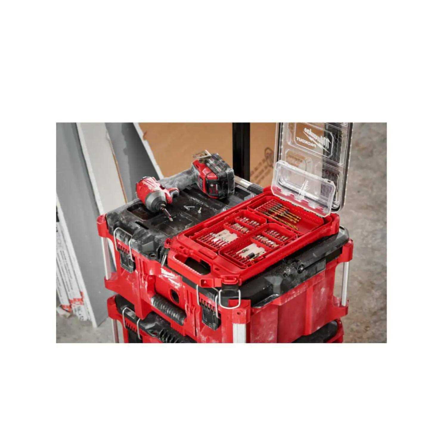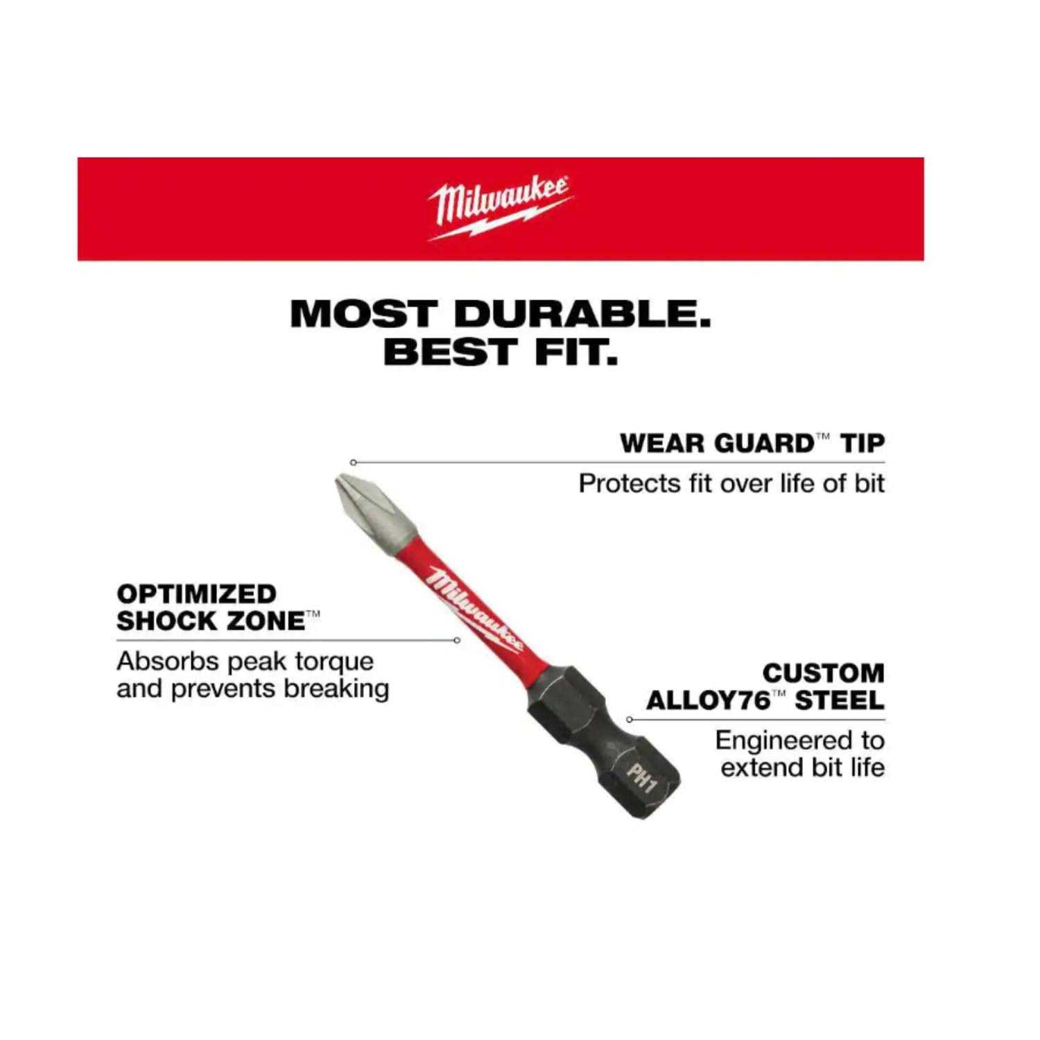 The Milwaukee Shockwave Impact Duty 60PC Drill & Drive Set is engineered to be the Most Durable, Best Fitting driver bits on the market. The Wear Guard Tip delivers increased wear resistance which protects the impact bit’s fit over the life of the bit. The Shock Zone is optimized for each tip type and length of the driver bit in the set to absorb peak torque and prevent breaking. The driver bits are made from Custom Alloy76 steel and a proprietary heat treatment process to extend bit life, providing up to 50X life versus other impact driver bits on the market. The Milwaukee Shockwave Impact Duty driver bits are built to provide users with extreme durability for the most demanding applications. The set is organized in a customizable accessory case designed for use in packet.