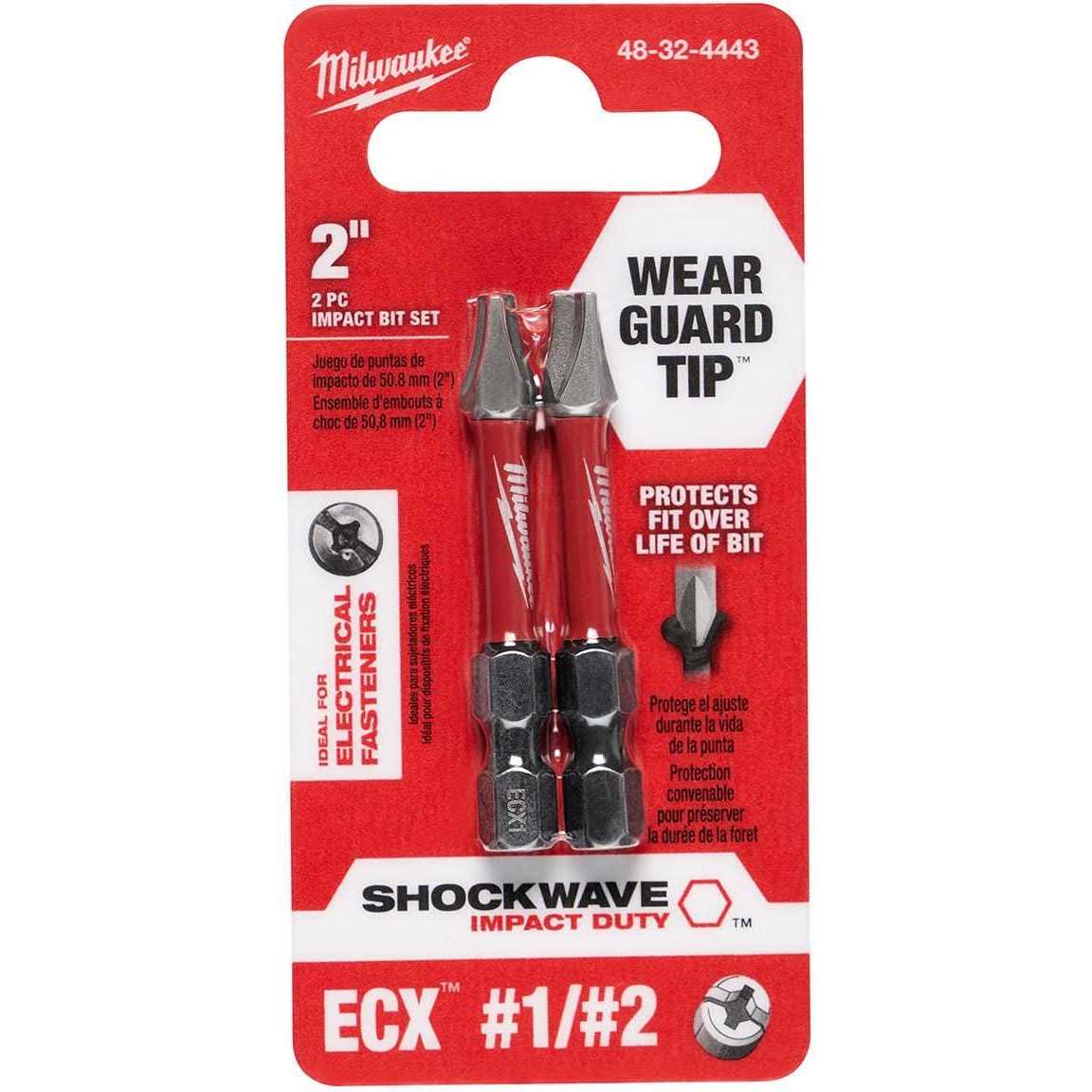 Milwaukee 48-32-4443 Shockwave 2 Power Bit ECX 2-piece Combo