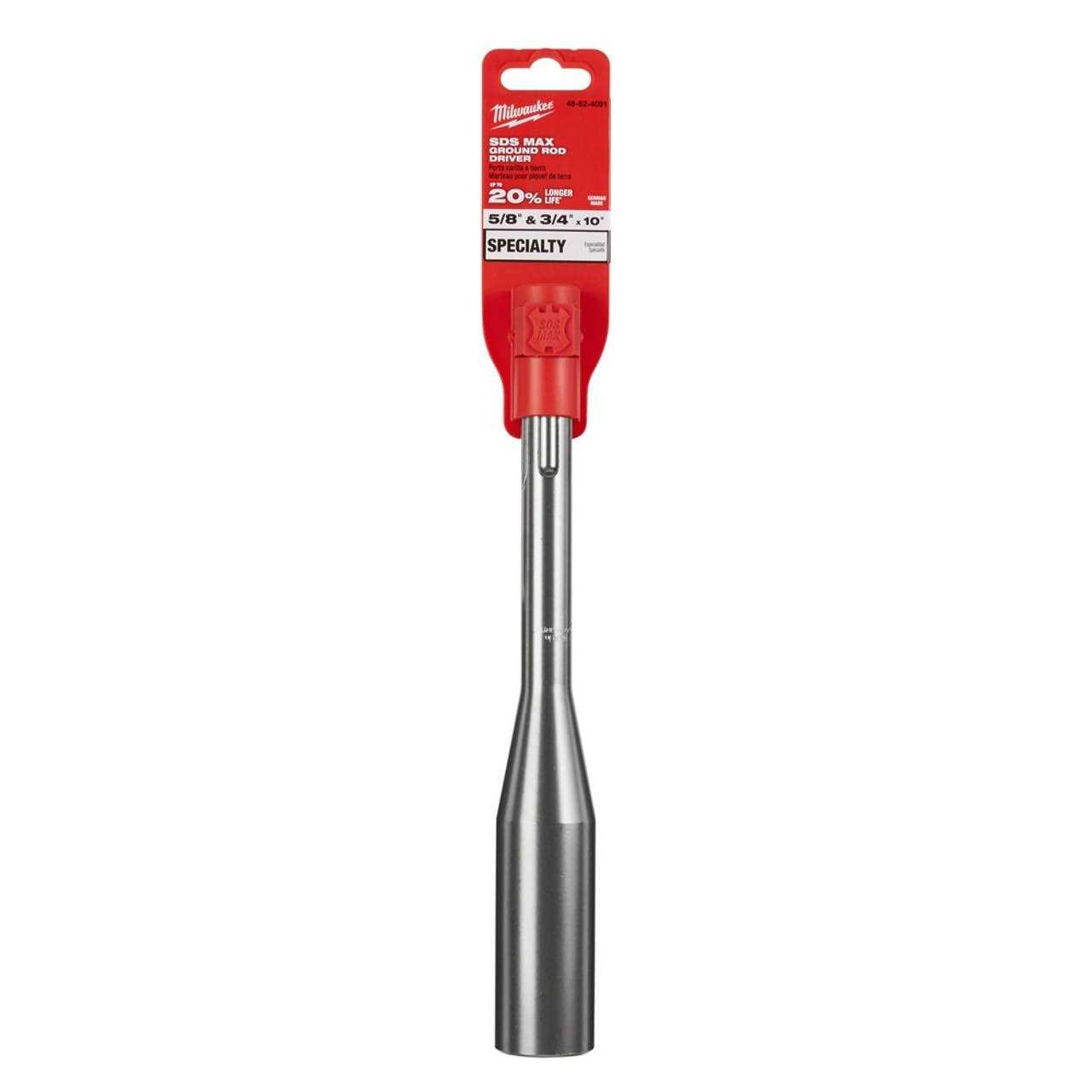 The Milwaukee SDS Max Ground Rod Driver is made from high grade, forged steel, providing up to 20% longer life. Ground rod driver is designed to effectively drive ground rods for electrical circuits into the ground. The capacity of the ground rod driver is 5/8in. and 3/4in. ground rods. This chisel is specifically designed for SDS Max rotary hammers and should be used in hammer only mode. High grade forged steel for durability and up to 20% longer life Drives 5/8in. and 3/4in. ground rods Designed for SDS Max rotary hammers 10in. overall length Use in Hammer Only mode Model Number: 48-62-4091. Age Group: adult.