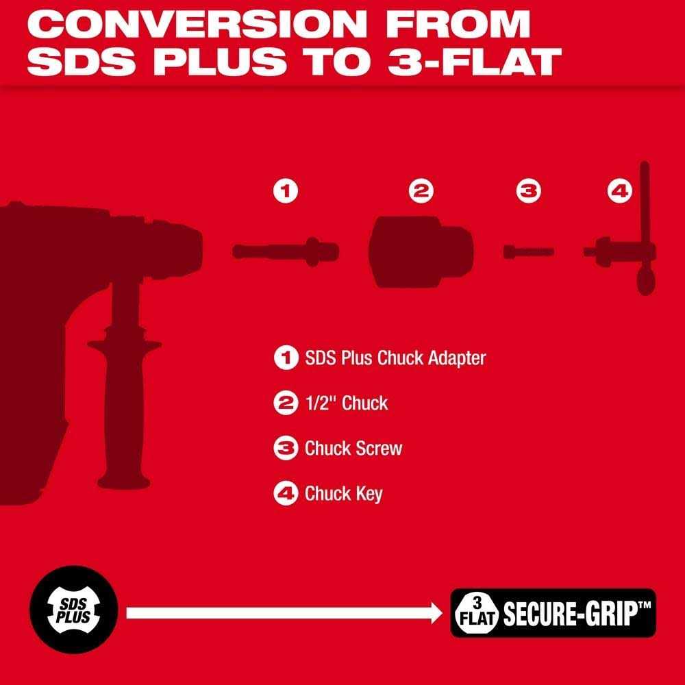 • Includes 1/2 In. chuck, SDS to 1/2 – 20 thread adapter, chuck screw and chuck key