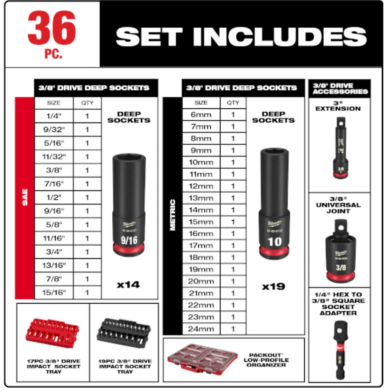 Milwaukee 49-66-6805 Shockwave Impact Duty Socket 3/8″ Drive 36-Piece PACKOUT Set