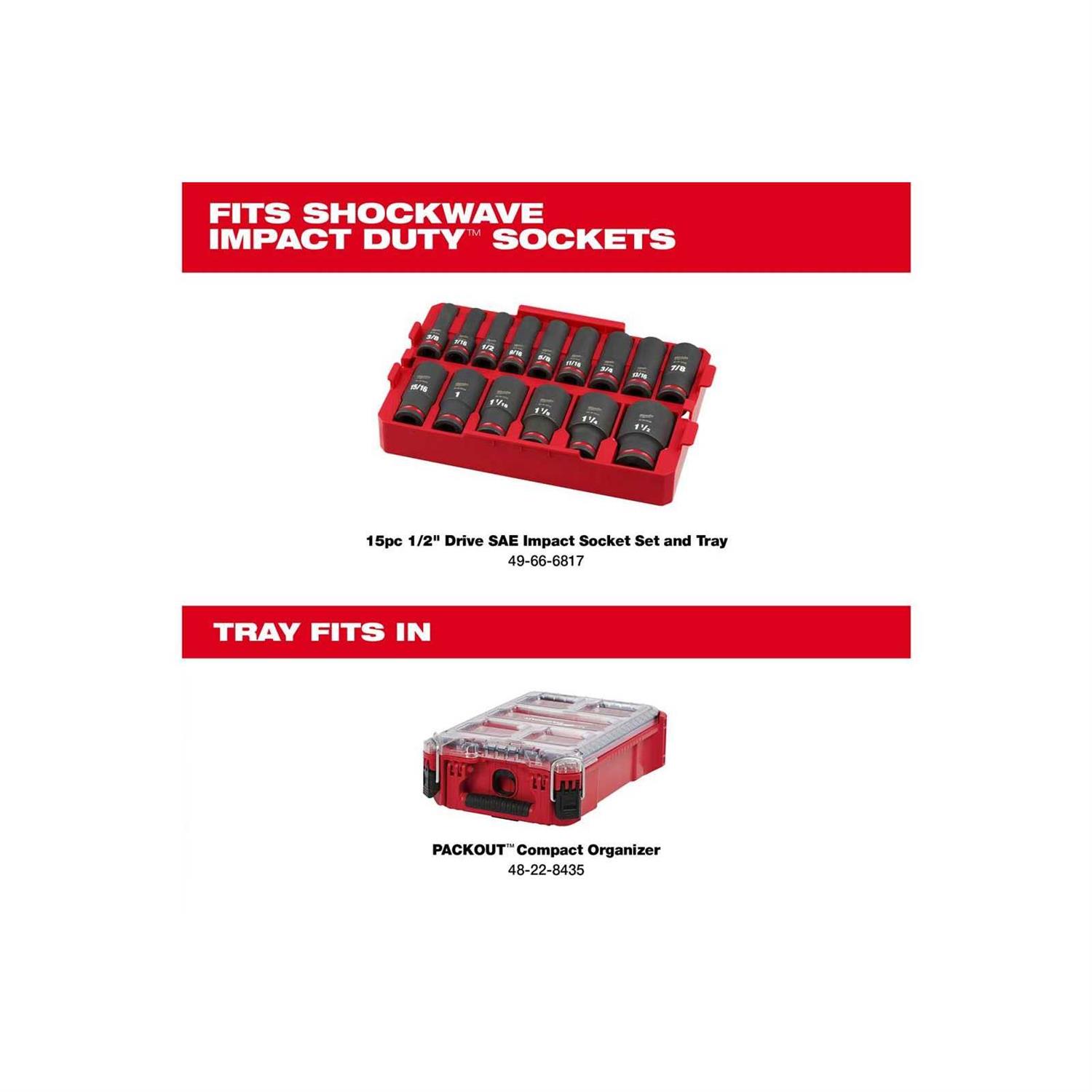 Milwaukee 49-66-6817 Shockwave Impact Duty Socket 1/2 in. Dr 15pc SAE Tray Set