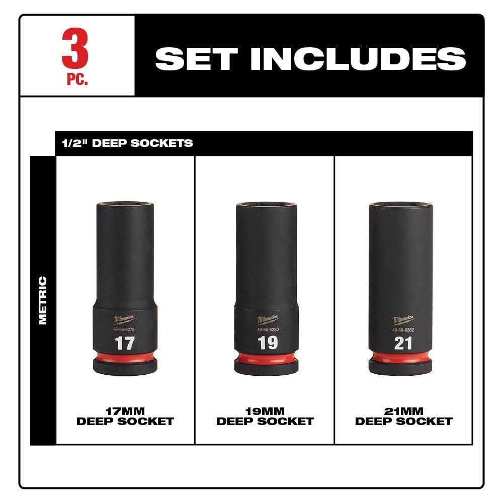 Milwaukee 49-66-7025 3PC SHOCKWAVE Impact Duty 1/2 Drive Metric Deep 6 Point Socket Set