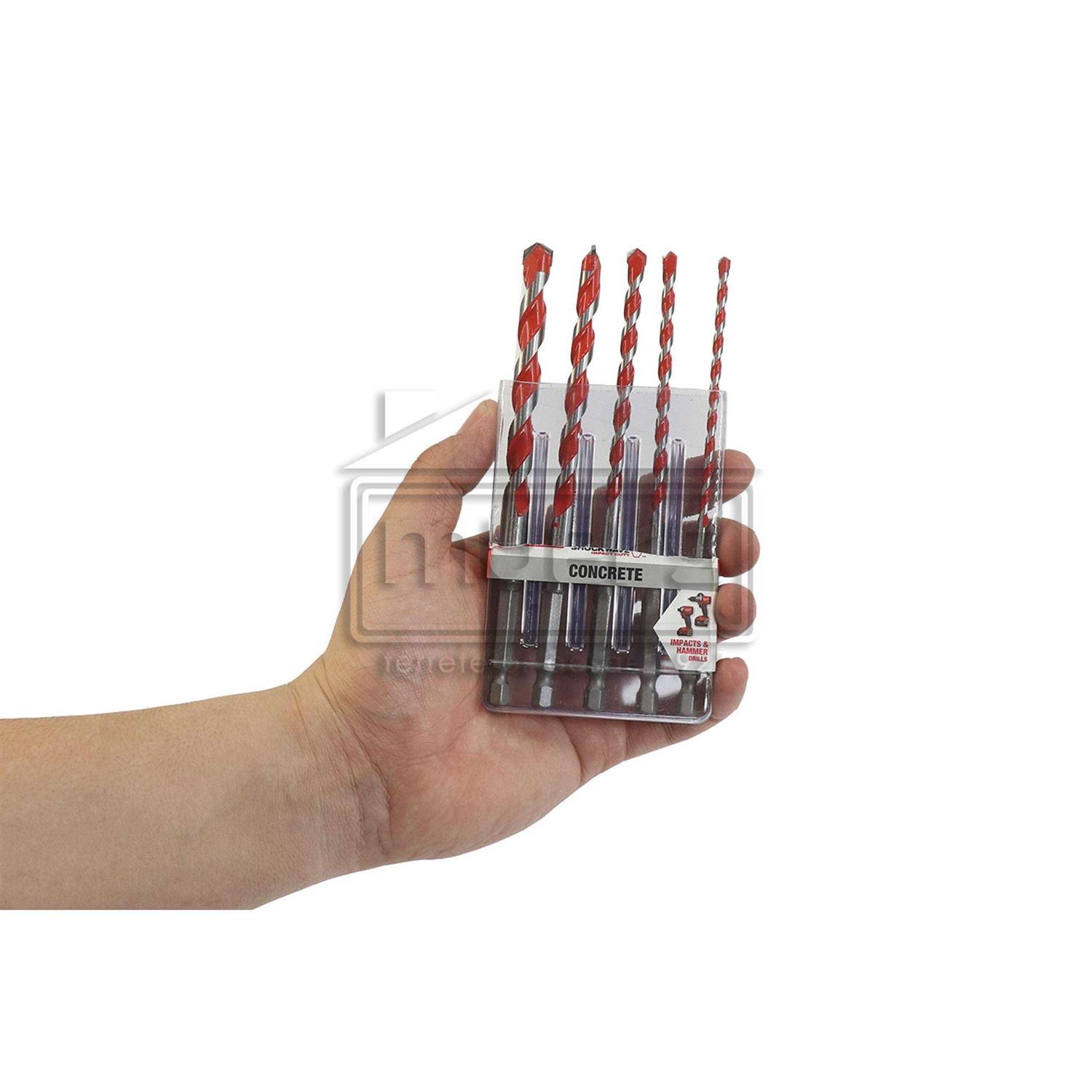 Milwaukee SHOCKWAVE 5-PC Carbide Hammer Drill Bits are built to deliver faster starts and less walking in concrete, brick and block. They are engineered with precision ground tips which are sharpened to deliver up to 5x longer life in concrete and 2x faster drilling in masonry. Their wide flute design offers faster dust removal, reduces heat and, as a result, delivers more holes per charge. These SHOCKWAVE Carbide Hammer Drill Bits are equipped with 1/4″ hex shanks and are ideal for drilling into masonry with both impact and hammer drill-drivers.