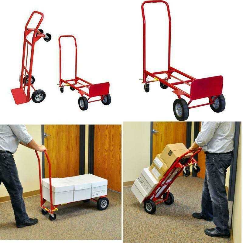 This heavy-duty Milwaukee Convertible Hand Truck is an excellent choice for those who need to move large loads quickly and often. The truck has a 600-pound load capacity that ensures it won’t buckle under the weight of your work. Milwaukee hand trucks can easily convert from a 2-wheel vertical hand truck to a 4-wheel platform cart in the horizontal position. This allows you to transport heavier or more awkwardly shaped loads. A flow back handle allows for one- or two-hand operation. Wheel guards are there to protect the load from the tires. Eight-inch puncture-proof tires never go flat so you can keep your work moving. Four-inch swivel casters give the Milwaukee Convertible Hand Truck increased maneuverability in the horizontal position.