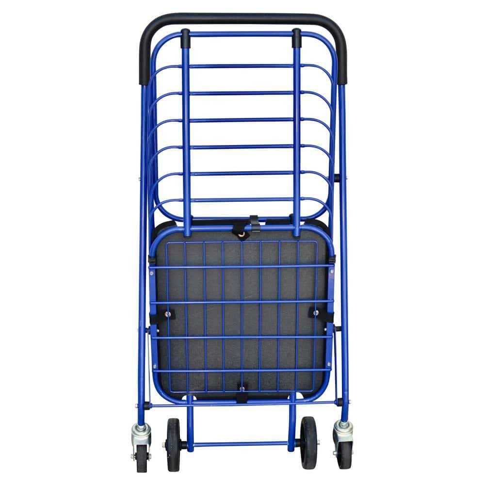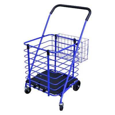 The Blue Grocery Cart with Accessory Basket is a multi-use cart great for grocery, laundry, shopping and other uses. It will hold up to 50 lbs. The accessory basket allows you to separate additional tools and supplies. It folds down for easy storage.