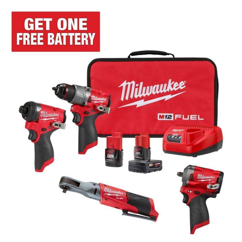 Milwaukee M12 Fuel 12-Volt Lithium-Ion Brushless Cordless Combo Kit (4-Tool) with 2 Batteries and Bag