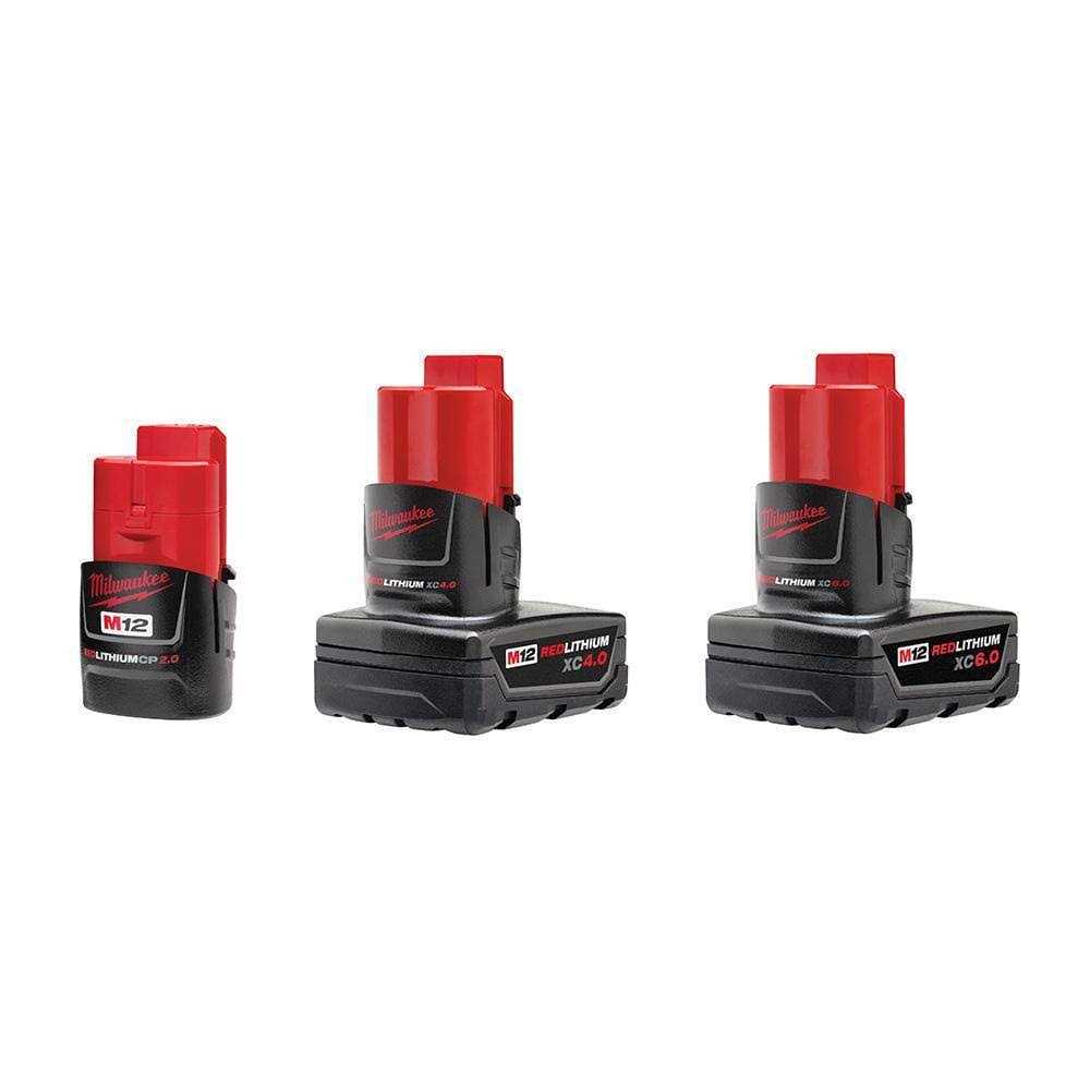 - Includes: (1) M12 CP2.0 Battery, (1) M12 XC4.0 Battery, (1) M12 XC6.0 Battery