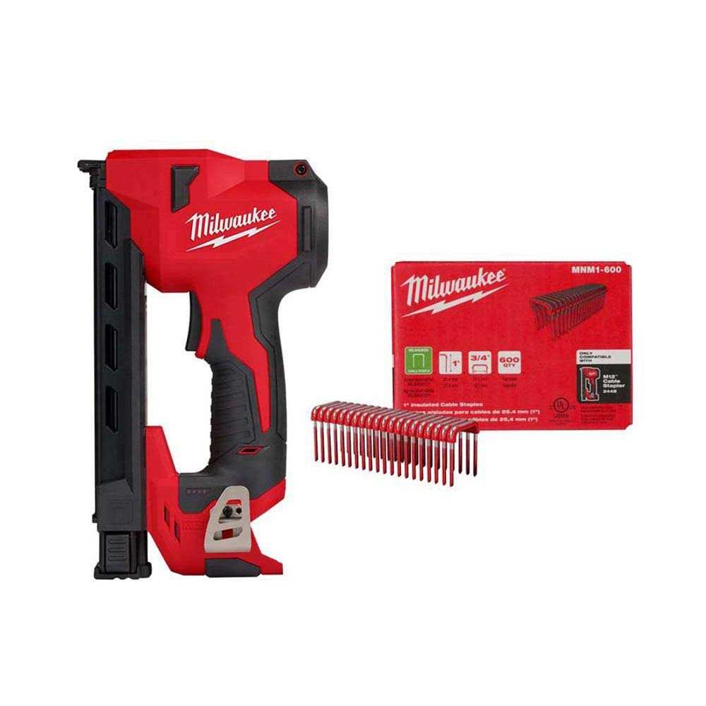 Milwaukee M12 12-Volt Cordless Cable Stapler with 1 in. Insulated Cable Staples for M12 Cable Stapler 600 per Box (3-pack)