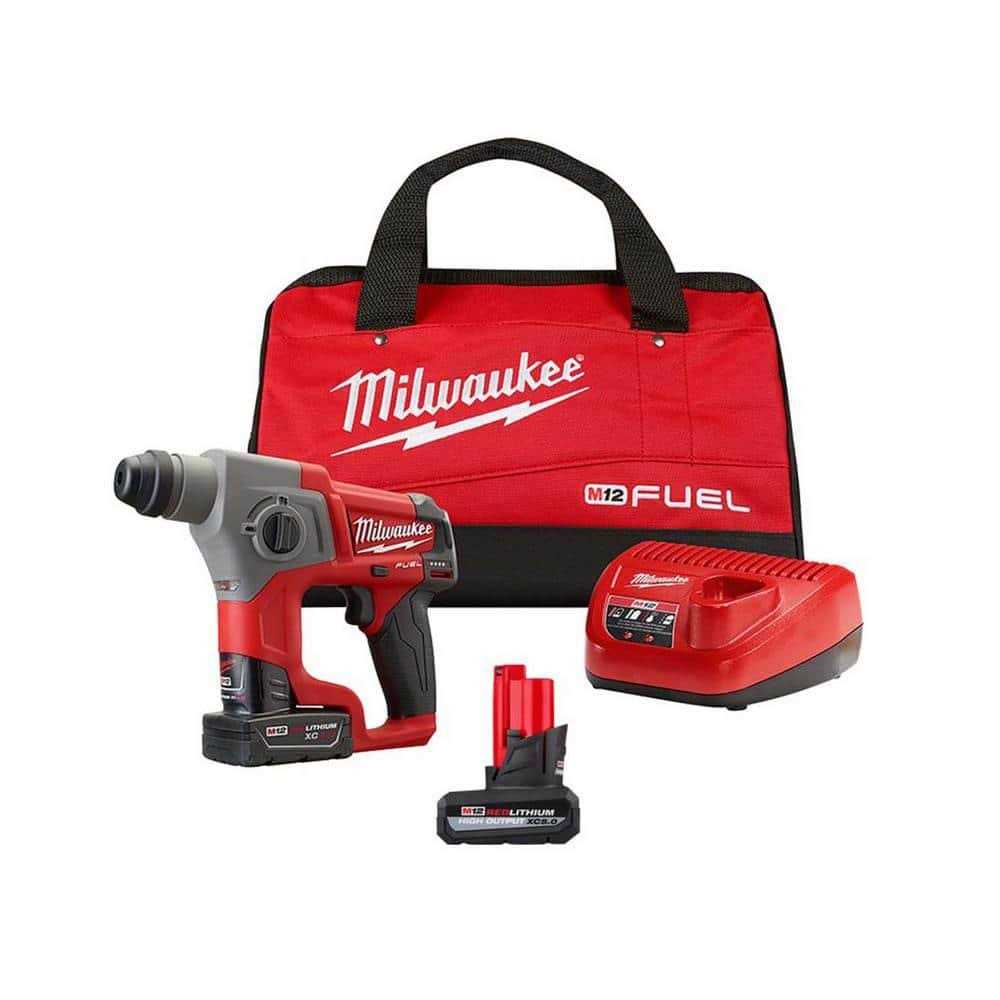 Milwaukee 2416-21XC-48-11-2450 M12 Fuel 12-Volt Lithium-Ion Brushless Cordless 5/8 in. SDS-Plus Rotary Hammer Kit with XC High Output 5.0 Ah Battery