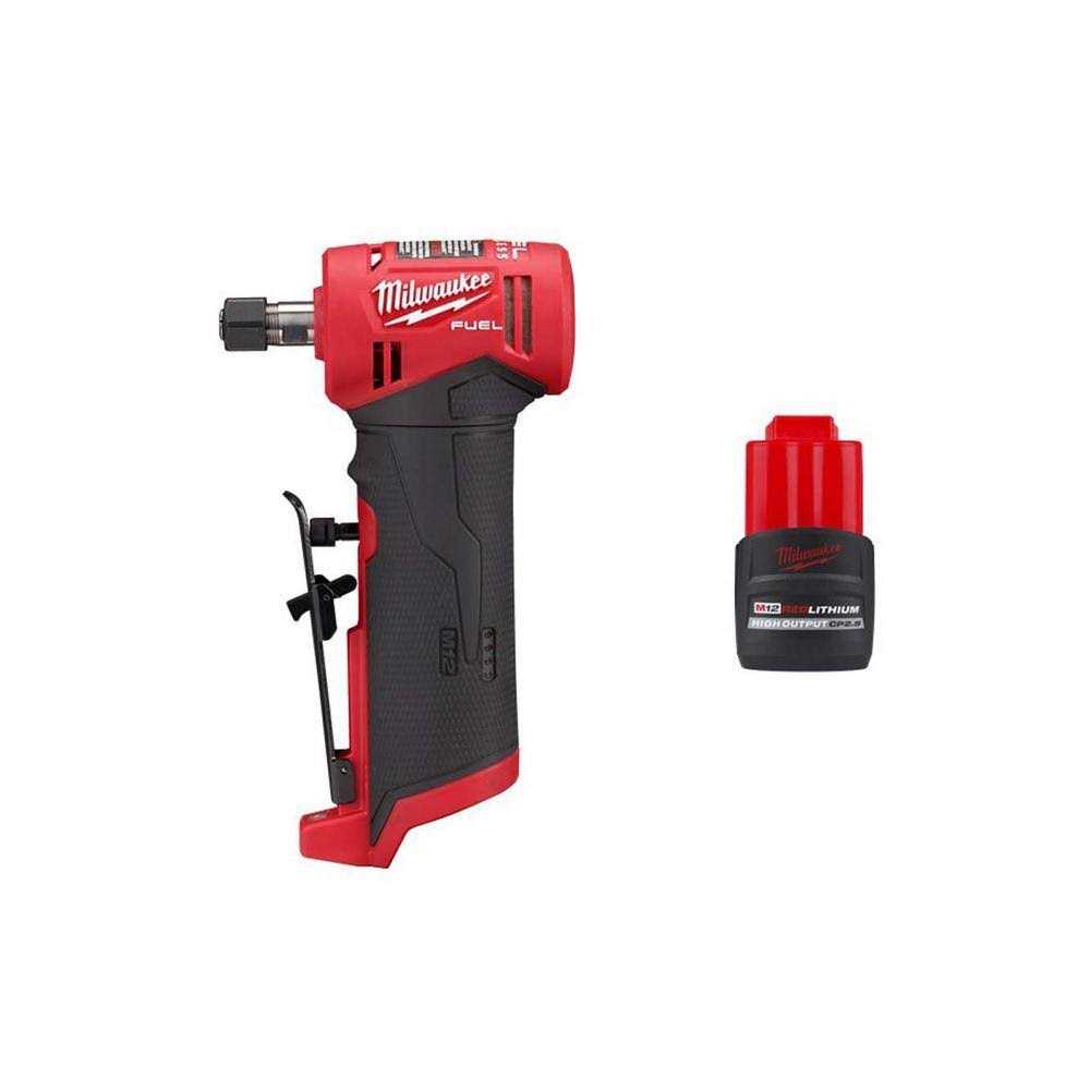 Milwaukee M12 Fuel 12V Lithium-Ion Brushless Cordless 1/4 in. Right Angle Die Grinder W/CP High Output 2.5 Ah Battery Pack