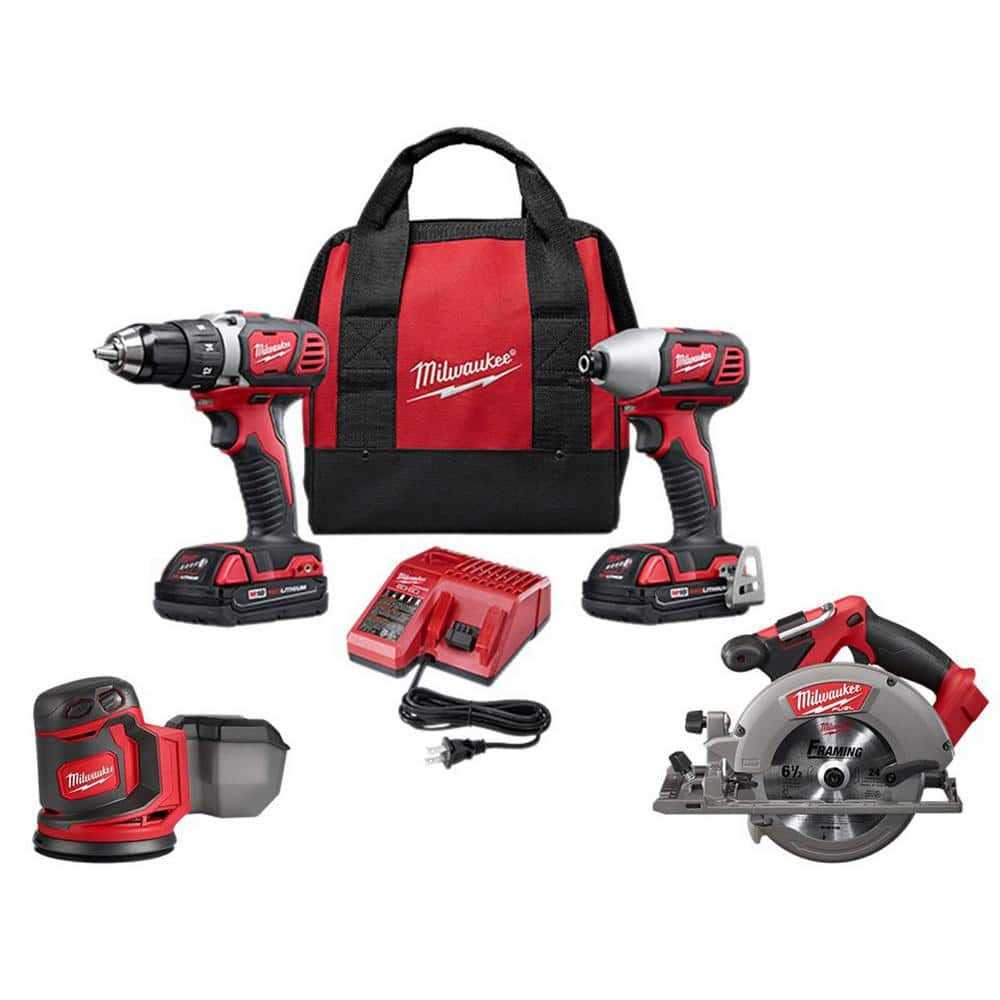 Milwaukee M18 18V Lithium-Ion Cordless Drill Driver/Impact Driver Combo Kit (2-Tool) w/ Circular Saw & Random Orbit Sander