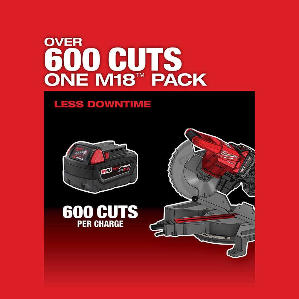 M18 Fuel, 7-1/4″, Dual Bevel, Sliding, Compound Miter Saw, Designed To Increase Productivity & Efficiency On The Jobsite, Accuracy, Portability & Performance, Weighing In At Only 28 LB With Battery, Dual Bevel Functionality Provides Users The Most Efficient & Productive Way Make A Variety Of Different Cuts Without Flipping Or Turning The Work Piece, Combination Of The Power State Brushless Motor & M18 Red Lithium XC5.0 Battery Delivers Over 600 Cuts Per Charge For All Day Run Time On A Single Charge.