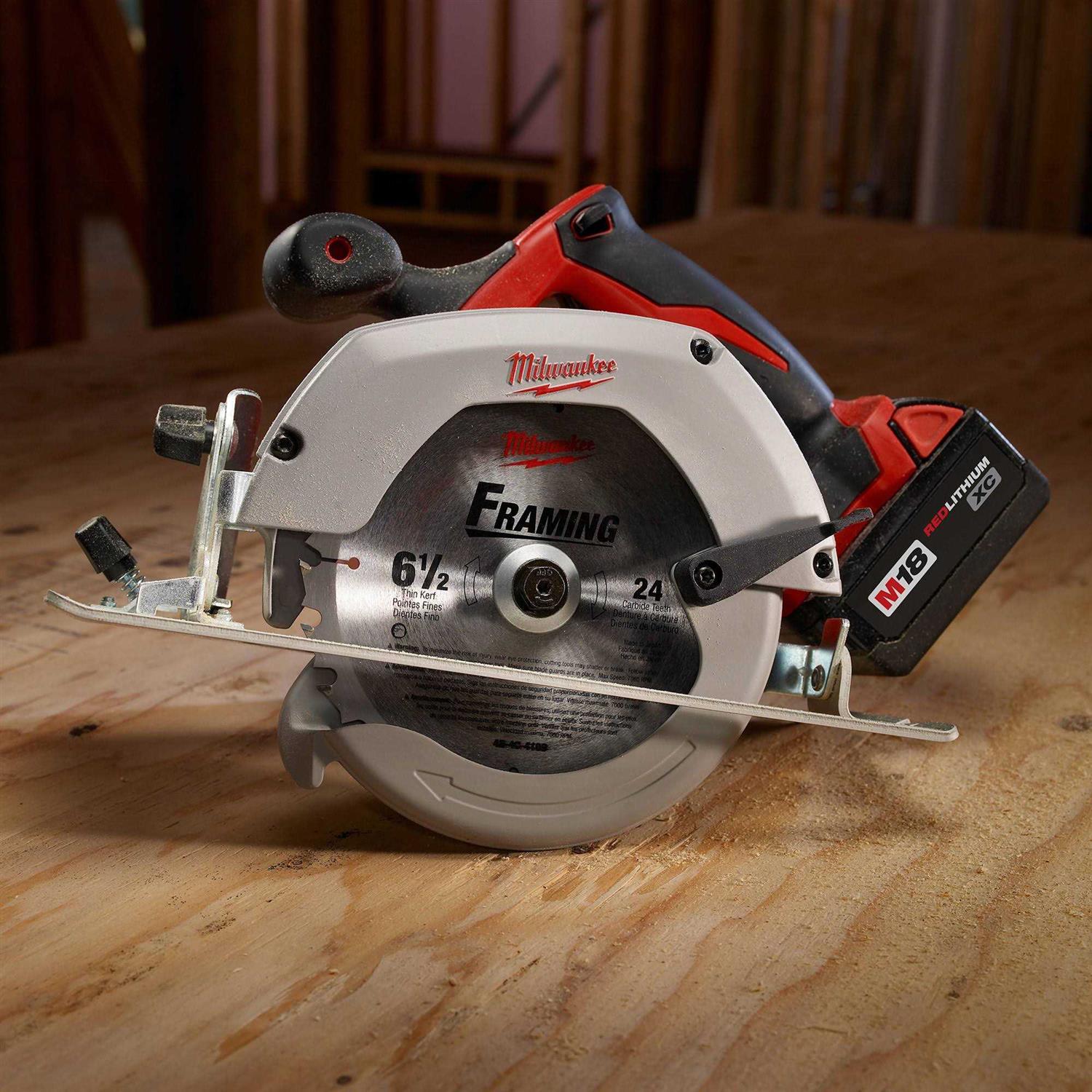 Milwaukee Electric Tool corporation introduces the new M18 cordless lithium-ion 6-1/2 in. circular saw that is designed to provide powerful lightweight cutting for a variety of applications including plumbing, electrical, framing, finishing and carpentry. The 2630 is a high performance circular saw that delivers the most durability in a cordless saw. Its powerful 3,500 RPM motor easily and quickly cuts tough material such as LVL headers. Magnesium upper and lower guards provide best-in-class durability to protect the blade from drops. The soft-grip handle is ergonomically designed to provide superior comfort and balance for easily controlled cuts. An easy-to-read aircraft aluminum shoe provides a light weight durable shoe and greater accuracy in rip cuts. Reconditioned product.