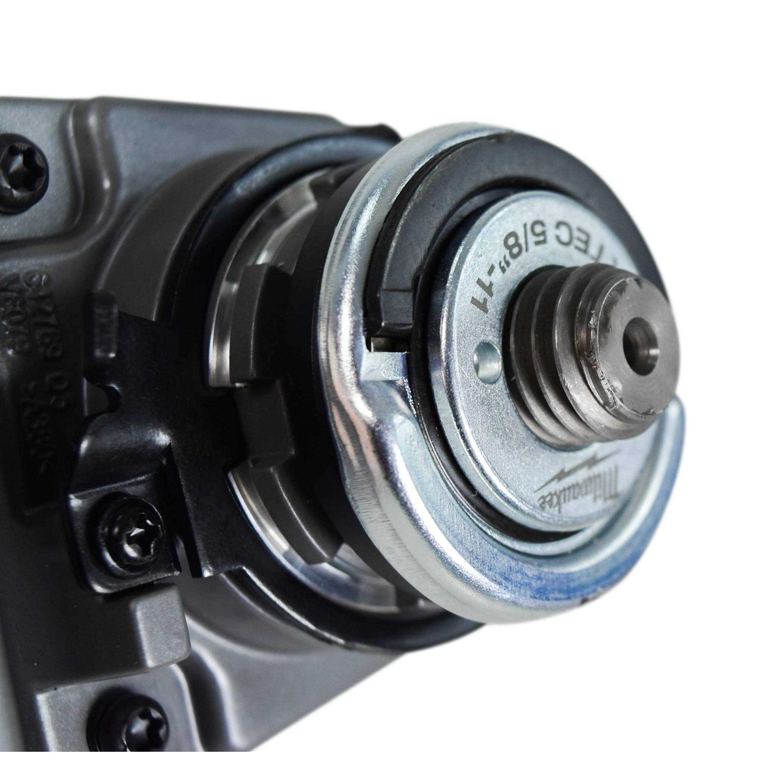 This M18 Fuel cordless braking grinder operates on an 18V Redlithium high output XC6 battery. It has a Powerstate brushless motor, a 4 to 6 inches grinder, a maximum speed of 9000 RPM, a Rapidstop brake, and a “-11 thread spindle. The braking grinder with no-lock paddle switch includes a Fixtec nut, a T-27 guard, and a side handle.