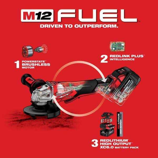 Variable Speed Braking Angle Grinder, Paddle Switch No-Lock is the newest addition to Milwaukee’s battery-powered grinder lineup, generating 11A Corded Power, 5 Speed for Increased Control, and RAPIDSTOP Brake for Enhanced Safety. The POWERSTATE Brushless Motor delivers 3,500- 8,500 RPM and maximum sustained power to complete the toughest grinding and cutting applications, allowing users to push their cordless angle grinders harder and longer than ever before. REDLINK PLUS Intelligence ensures unmated levels of performance, protection, and compatibility. The M18 REDLITHIUM HIGH OUTPUT XC6.0 Batteries (not included) deliver 50% more power while running 50% cooler than the M18 REDLITHIUM XC Batteries. The Variable Speed dial provides 5-speed settings between 3,500 RPM and 8,500 RPM allowing for greater control in more applications. With tool-free accessory and guard adjustments, users will experience faster accessory changes and less downtime. Variable Speed Angle Grinder takes cordless tools to the next level in performance, run-time, and application versatility.