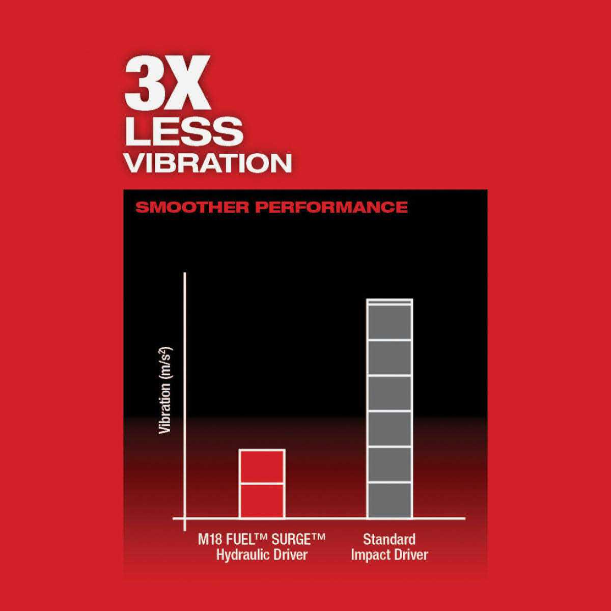 The M18 FUEL SURGE 1/4 Hex Hydraulic Driver is the quietest cordless fastening solution on the market. With Milwaukee’s new FLUID-DRIVE Hydraulic Powertrain, users will experience up to 50% quieter operation, 3X less vibration for smoother operation, and faster driving speeds compared to standard impacts. The POWERSTATE Brushless Motor delivers up to 0-3,000 RPM with constant power output to drive screws faster. REDLINK PLUSIntelligence is the most advanced electronic system on the market, preventing damage to the tool and battery caused by overloading or overheating. For use with REDLITHIUM Compact Batteries or Extended Capacity Batteries (sold separately), which deliver more work per charge and more work over the life of the pack than competitive batteries on the market. The 4-Mode DRIVE CONTROLprovides greater control over output speed and power for greater versatility. Self-Tapping Screw Mode is designed to reduce walking when starting self-tapping screws as well as reduce