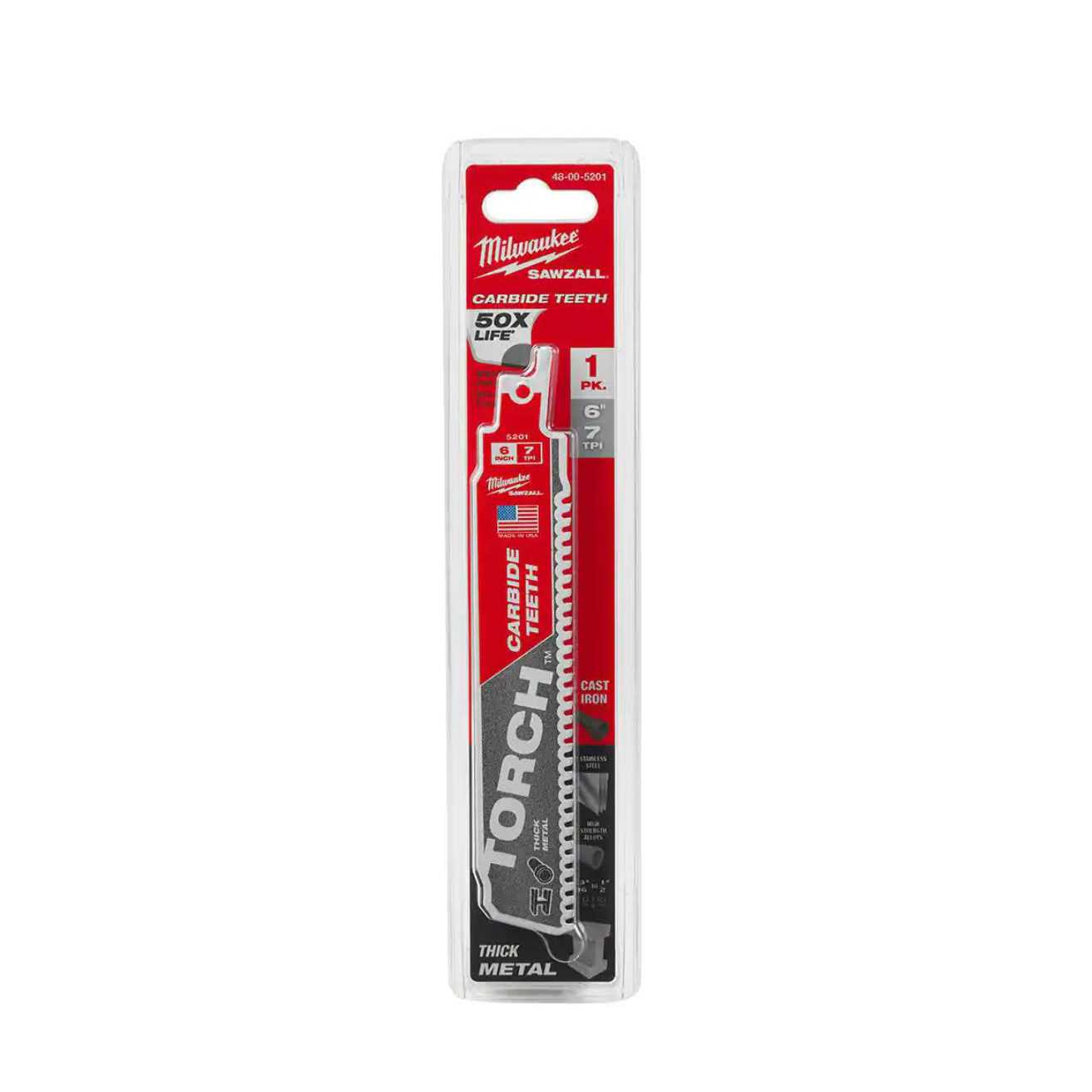 - Includes: one 6 in. 7 TPI torch carbide teeth metal cutting SAWZALL reciprocating saw blade (48-00-5201).