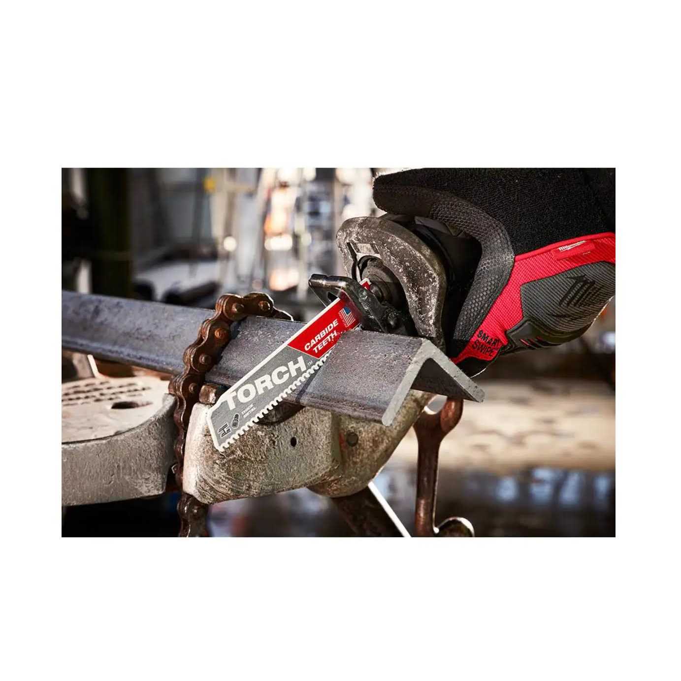 The Milwaukee M18 HACKZALL One-Handed Recip Saw features a Dual Gear Anti-Vibration System providing users with unmatched comfort and control. Its lightweight design provides users with superior control and versatility. The cordless recip saw’s powerful motor delivers 0-3,000 strokes per minute while its 3/4 in. stroke length allows users to perform fast cuts through a wide range of material such as wood, metal and PVC. The dual gear anti-vibration system increases control and accuracy. The HACKZALL One-Handed Recip Saw also features a QUIK-LOK blade clamp which allows users to perform fast and easy blade changes. Torch with Carbide Teeth has been engineered to deliver extreme life and unmatched versatility in thick and extreme metal cutting applications. This blade delivers up to 50X life over standard blades. The Torch with Carbide Teeth tackles a wide variety of metal materials ranging from black pipe and angle iron to cast iron, stainless steel and high strength alloys.