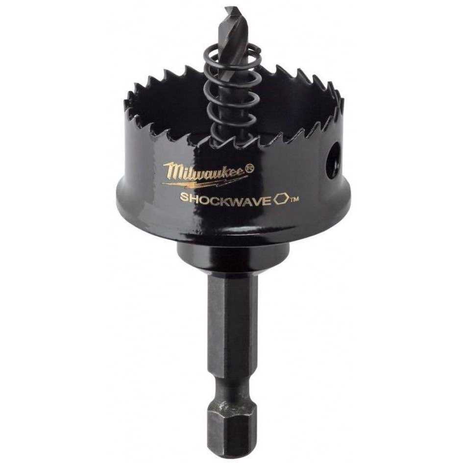 Designed with a robust 1/4 in quick change hex shank, Milwaukee Shockwave Impact Duty thin wall hole saws give professionals a hole making solution to use with impact drivers. Utilizing a thin wall, 8 TPI design, thin wall hole saws deliver a burr-free cut up to 40% faster than standard bi-metal hole saws. The included ejection spring removes the frustration of manually removing slugs by automatically ejecting the material. A stop shoulder design prevents over-drilling into material and potentially damaging inner components of electrical and junction boxes. Choose thin wall hole saws for use in plastics and thin gauge metals up to 1/8 in thick. Stop shoulder design prevents over drilling and damaging components. Stop shoulder design prevents over drilling and damaging components. Thin wall 8 TPI design for 40% faster cuts than standard bi-metal hole saws. 1/4 in quick-change hex shank for use with impact drivers. Ejection spring automatically removes slugs.