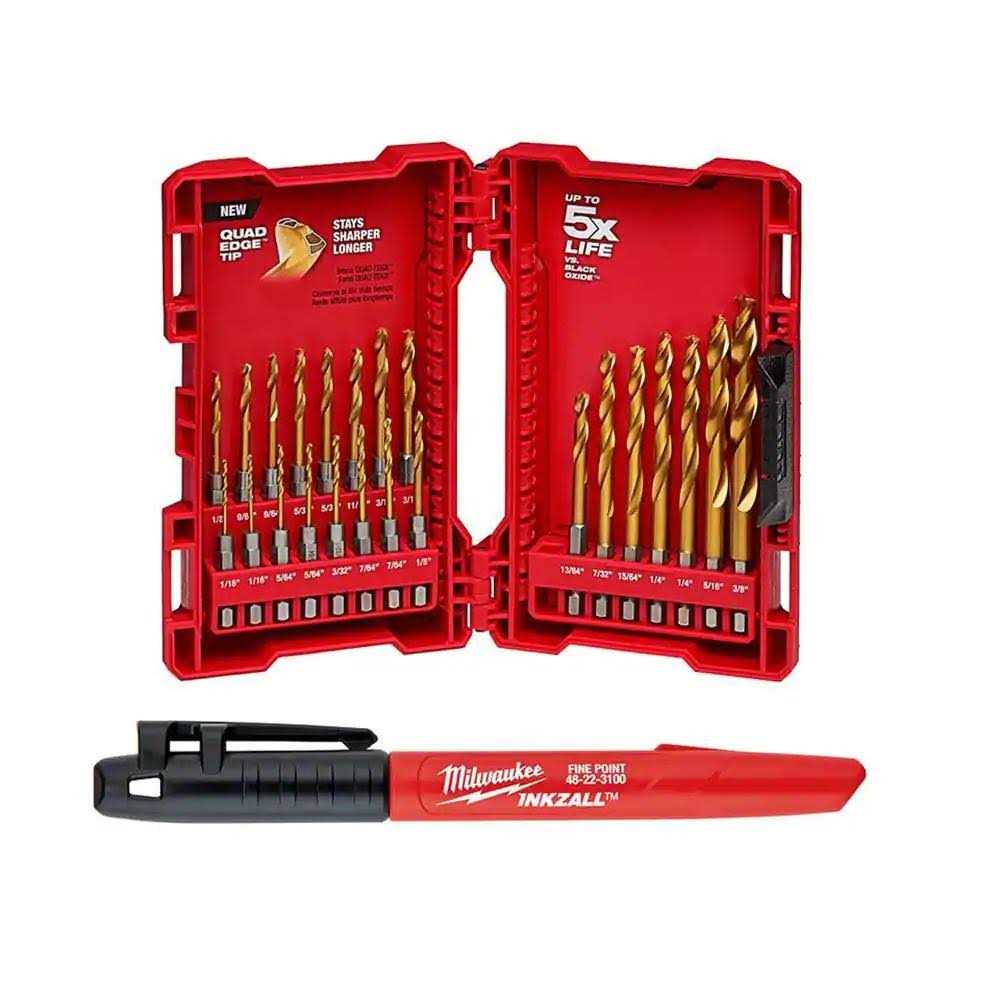 Milwaukee SHOCKWAVE Impact-Duty Titanium Drill Bit Set and 1 Inkzall Black Fine Point Jobsite Permanent Marker
