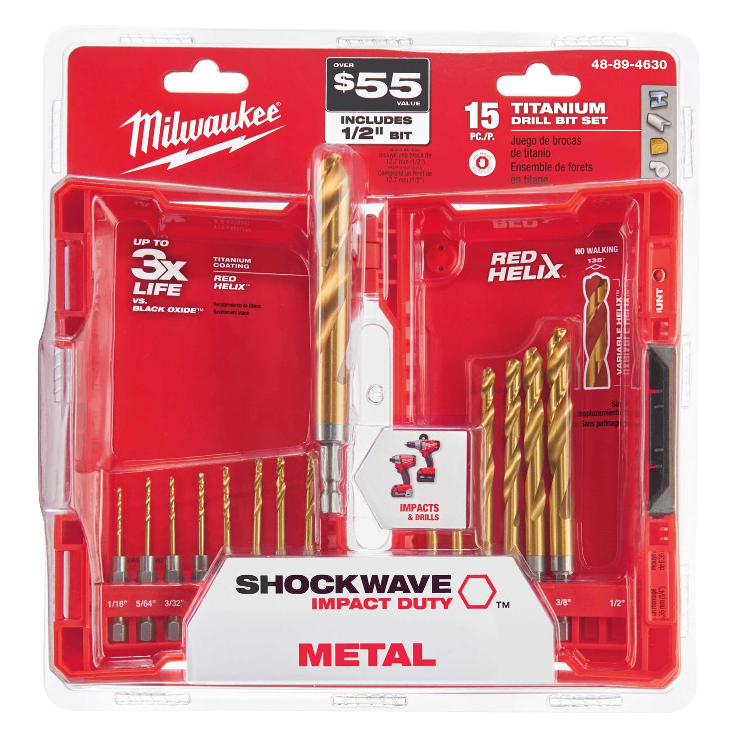 Milwaukee 48-89-4630 – 15 Piece Titanium Shockwave Drill Bit Set