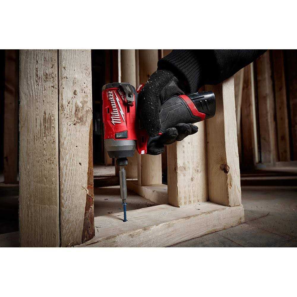 Included is the M12 FUEL Drill Driver 2503-20 the Most Capable Lightest Weight and Most Compact 12V Hammer Drill in the market. At only 6.6 and 2.8lbs of weight it is the best hammer drill to use in compact spaces. It delivers the power to do a wide variety of applications at 1700 RPMs and 350in.lbs. of torque. Also included the M12 FUEL Hex Impact 2553-20 the Fastest Driving Speed Most Compact with 4- Mode Drive Control Impact Driver in the market. At 3300 RPM the impact drives screws over 20% faster than competitors. At 5.1 in length it allows for unmatched access in tight spaces. The 4-Mode DRIVE CONTROL provides greater control over output speed and power for greater versatility by delivering 0-1300 RPM in Mode 1 0-2400 RPM in Mode 2 and 0-3300 RPM in Mode 3.