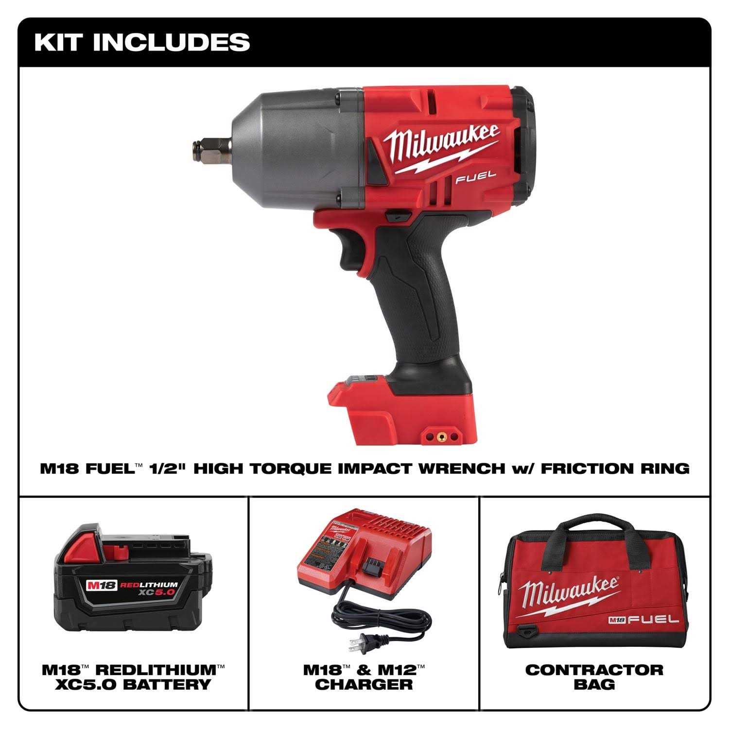 The 2767 M18 FUEL Cordless Brushless High Torque Impact Wrench with Friction Ring eliminates the need to use a pneumatic tool for those stubborn and rusted bolts by delivering 1000 ft./lbs. of fastening torque and 1400 ft./lbs. of nutbusting torque. With 2X faster removal speed users will be able to get the job done faster and be more productive throughout their day. By providing the industrys most compact cordless High Torque Impact Wrench at 8.39 in. L this tool allows for more access in tight spaces. 4Mode DRIVE CONTROL with Bolt Removal mode gives users the most control over their fasteners. Bolt Removal mode gives the user more control when removing fasteners by slowing to 750 RPM once the fastener has been busted loose. This tool offers quick toolfree socket changes with a 1/2 in. friction ring anvil. A premium rubber overmold material gives you ultimate comfort during prolonged use while lasting longer against corrosive materials.