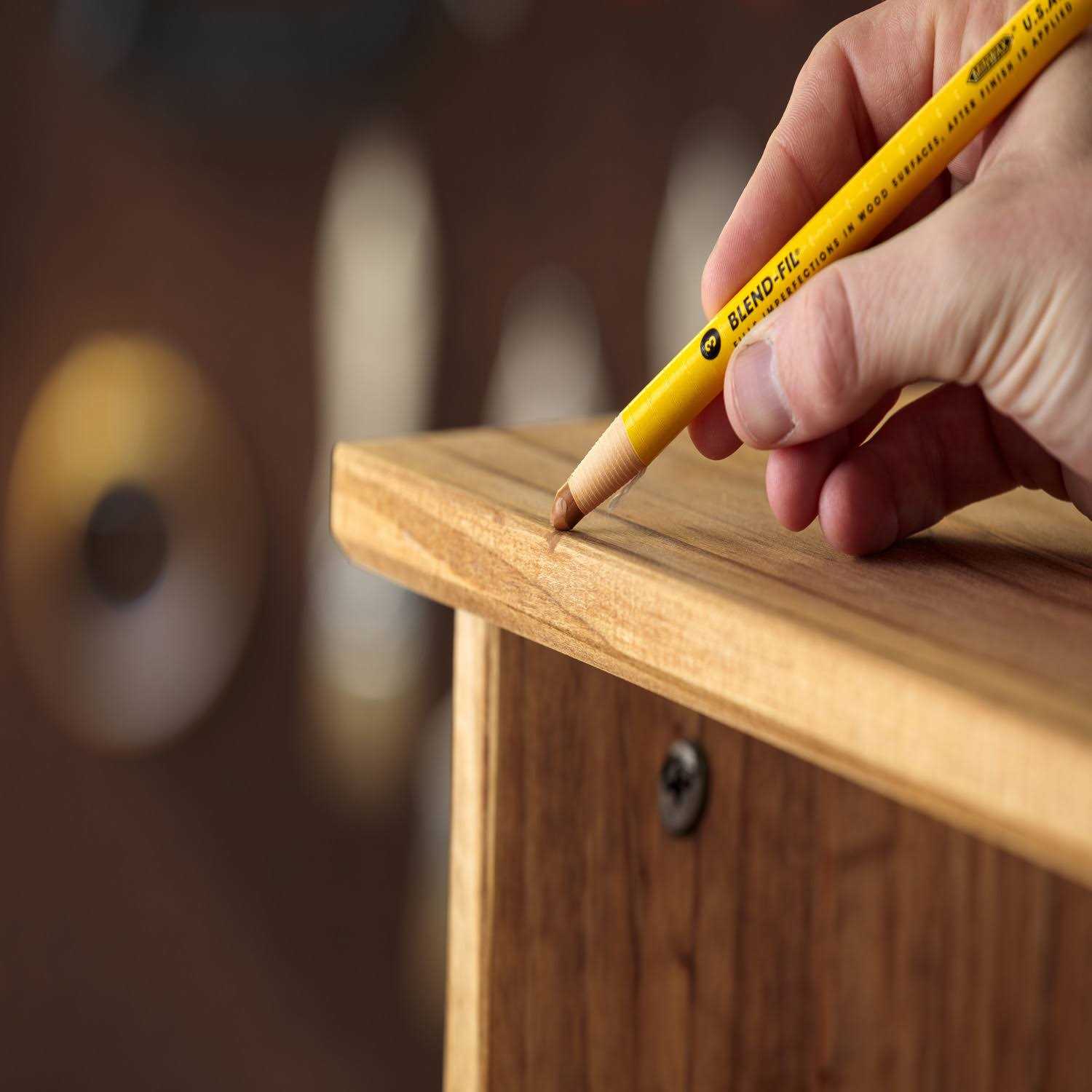 - Minwax Blend-Fil Pencils are perfect for easy touch-up and repair of scratches and nail holes in stained and finished wood